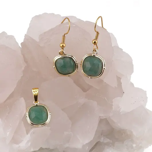 Set Cercei cu agatatoare si Pandantiv Aventurin patrat cu montura aurie, 15mm