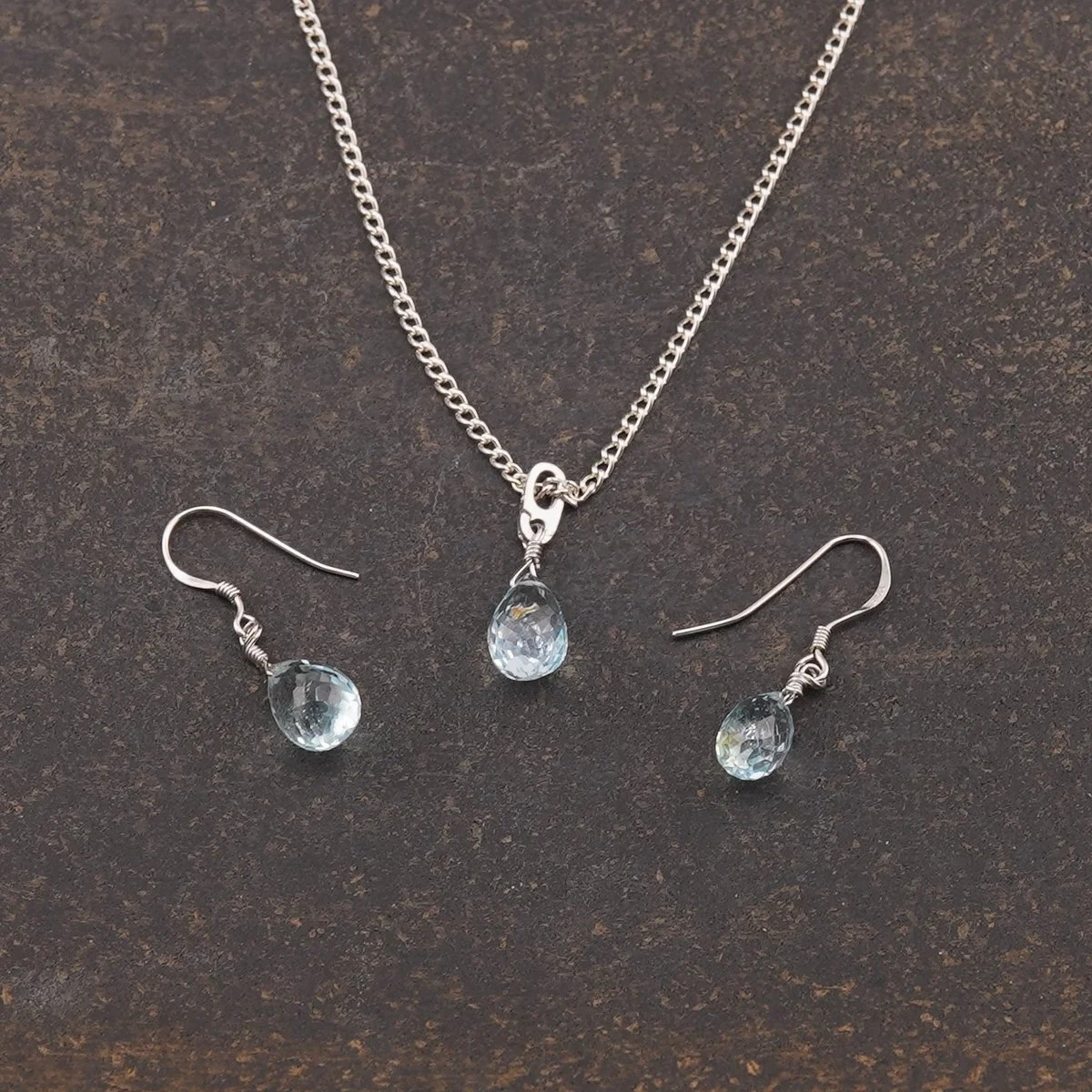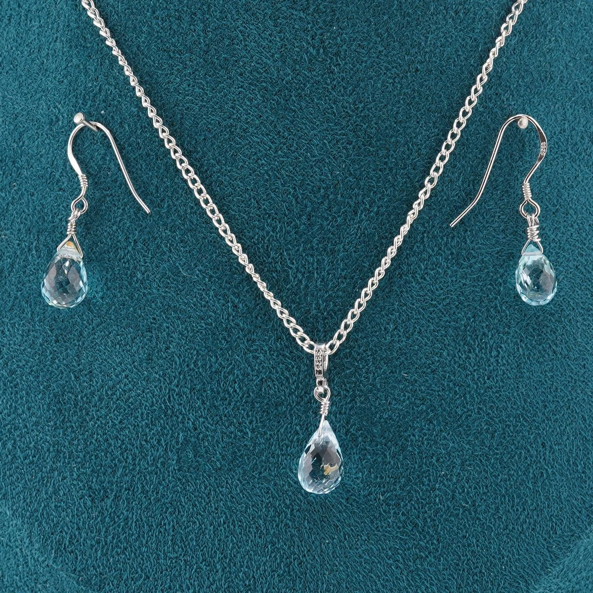 Set Cercei cu agatatoare si pandantiv Topaz picatura fatetata si Argint 925, 10-12mm