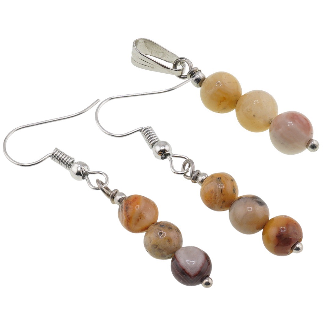 Set Cercei si Pandantiv Agat crazy lace sfere, 6mm