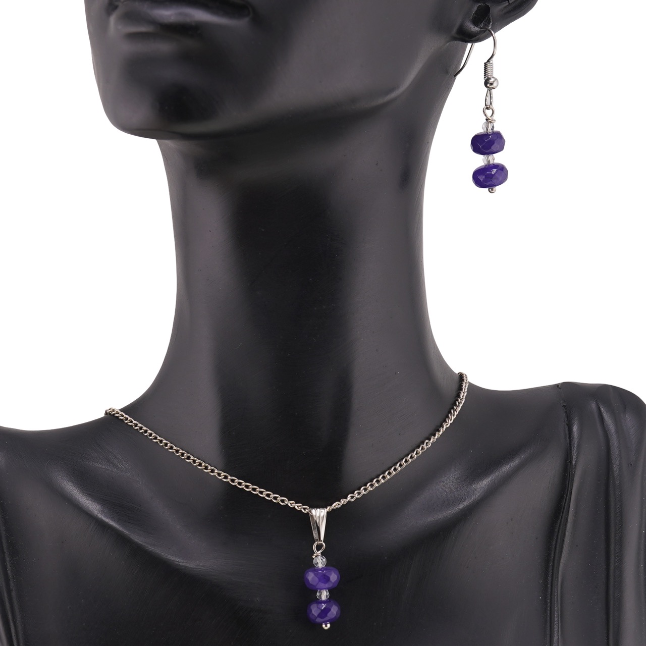 Acest set de cercei și pandantiv din agat mov și zirconiu este creat pentru tine dacă îți dorești o bijuterie care să îmbine eleganța cu susținerea interioară. Agatul mov, cristal natural vopsit în nuanțe profunde, se prezintă sub formă de discuri fațetate de 8 mm, iar zirconul transparent, cunoscut și ca silicat de zirconiu sau piatra înțelepciunii antice, completează armonios designul prin mici sfere fațetate de 3 mm.
