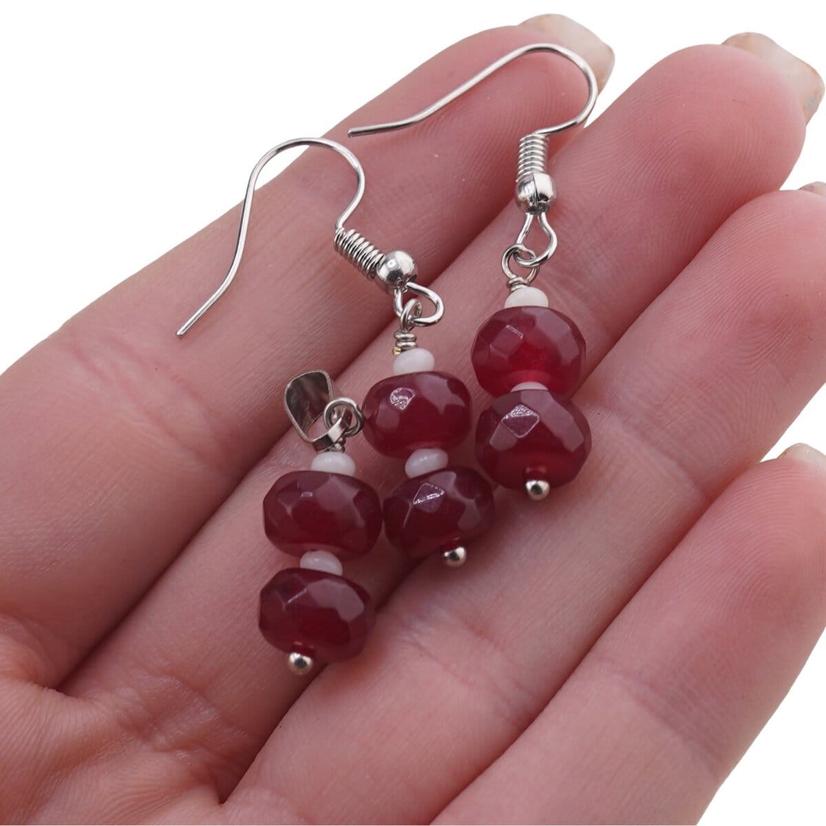 Discurile fațetate de agat roz de aproximativ 8 mm atrag privirea prin luciul lor delicat, în timp ce rondelele fine de onix alb de circa 3 mm completează piesele cu o notă luminoasă. Agatul roz este un cristal natural, colorat pentru a evidenția tonurile calde și feminine, iar onixul alb, varietate de calcedonie stratificată, este cunoscut pentru legătura sa cu stabilitatea interioară.