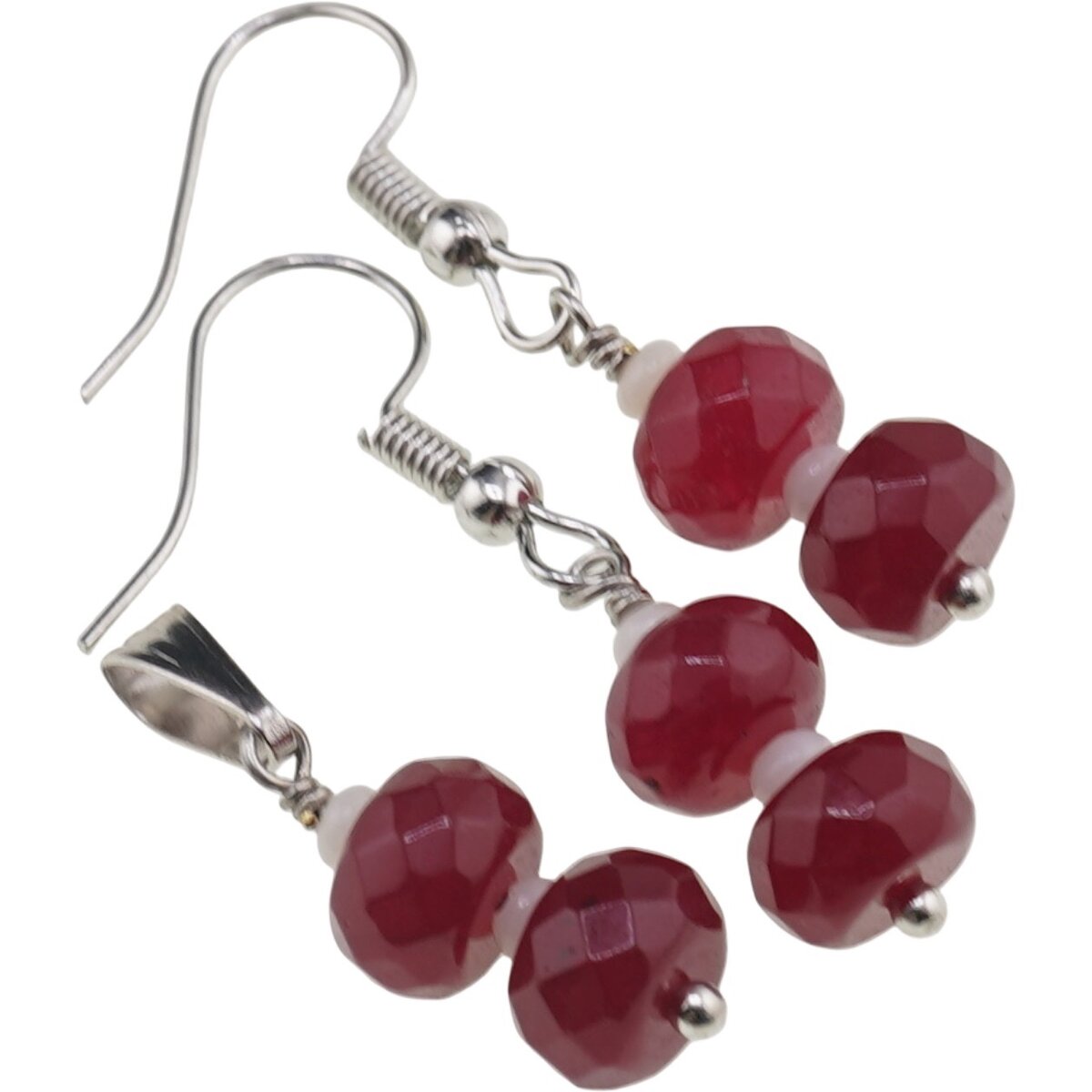 Set cercei si pandantiv Agat roz discuri fatetate 8mm si Onix alb rondele 3mm
