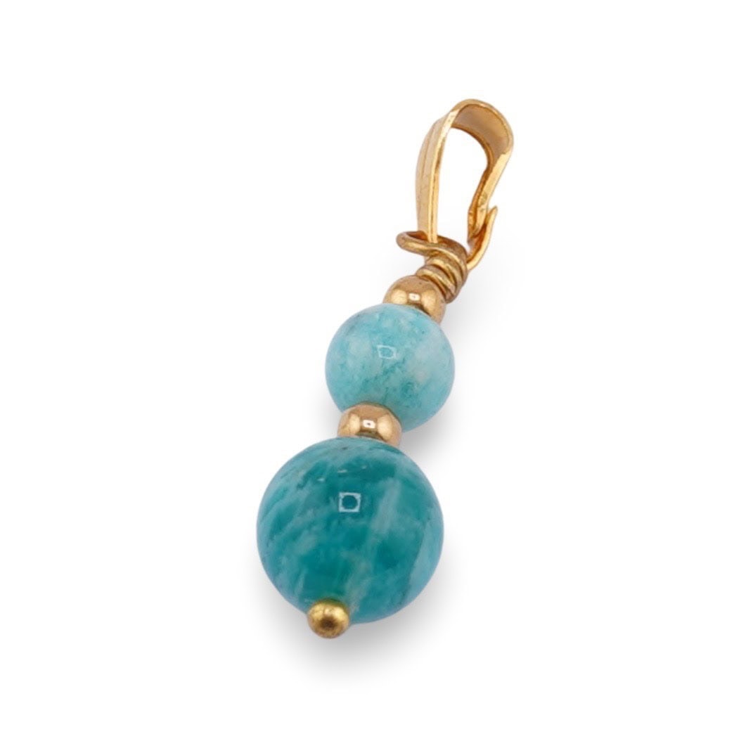 Set cercei si pandantiv Amazonit Rusia sfere cu bumbi aurii, 6–8mm