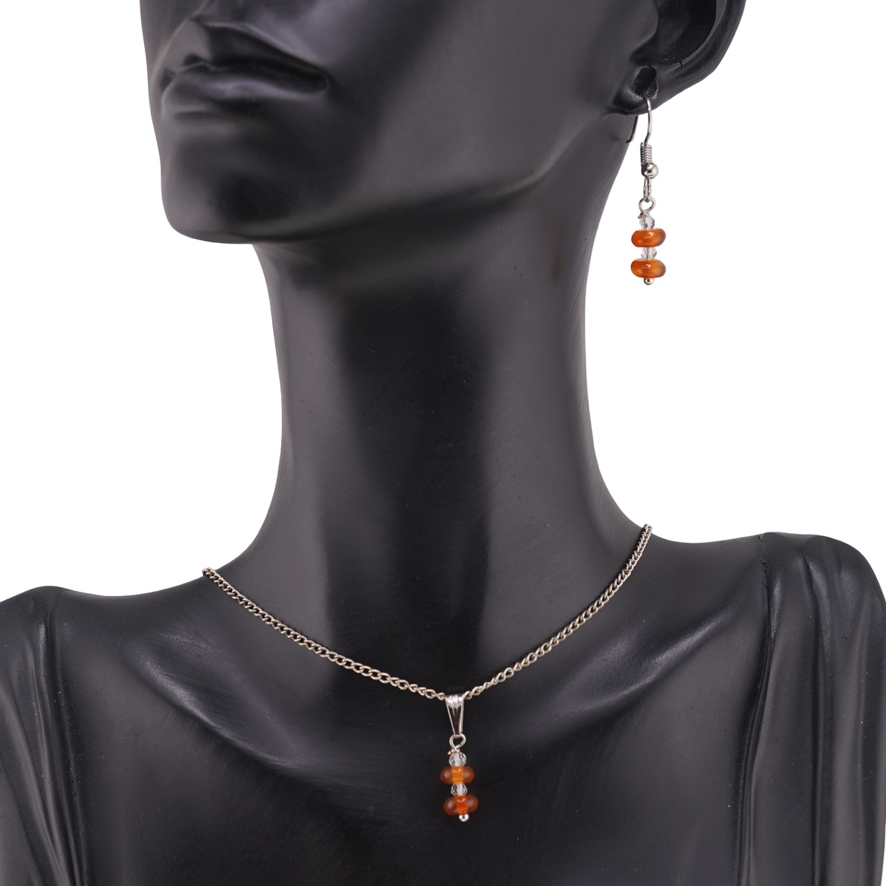 Acest set de cercei și pandantiv din carneol natural și zirconiu este o alegere inspirată pentru tine dacă îți dorești o bijuterie care să îmbine eleganța cu energia cristalină. Combinația dintre rondelele de carneol de aproximativ 6 mm, în nuanțe calde de portocaliu, și sferele fațetate de zirconiu transparent de 3 mm oferă un joc discret de lumini, potrivit atât pentru purtare zilnică, cât și la ocazii speciale.