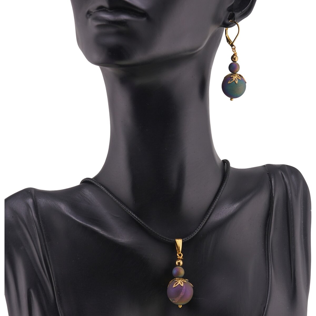 Setul contine o pereche de cercei si un pandantiv.