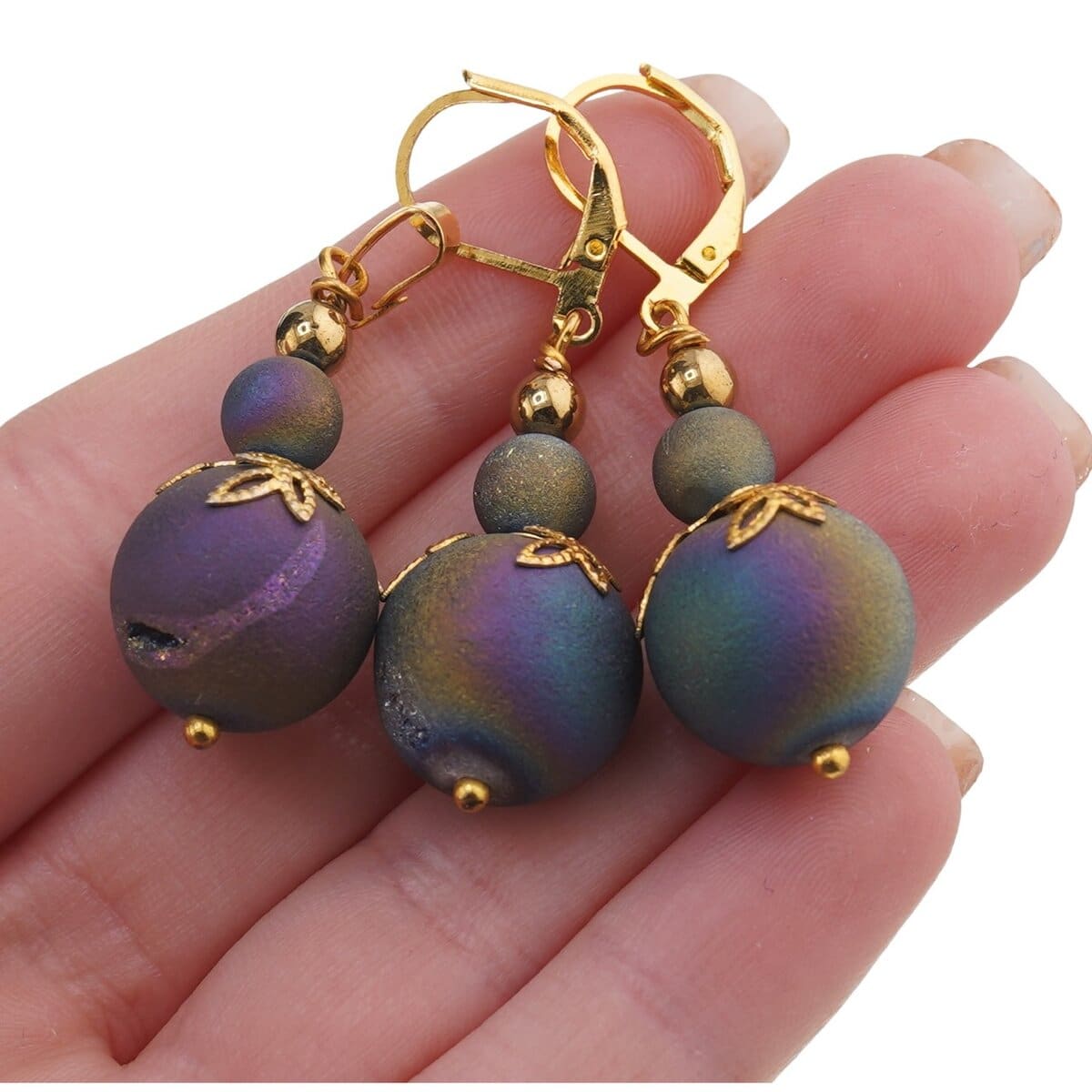 Set cercei si pandantiv Cuart Titan Aura sfere 6-15mm cu flori aurii