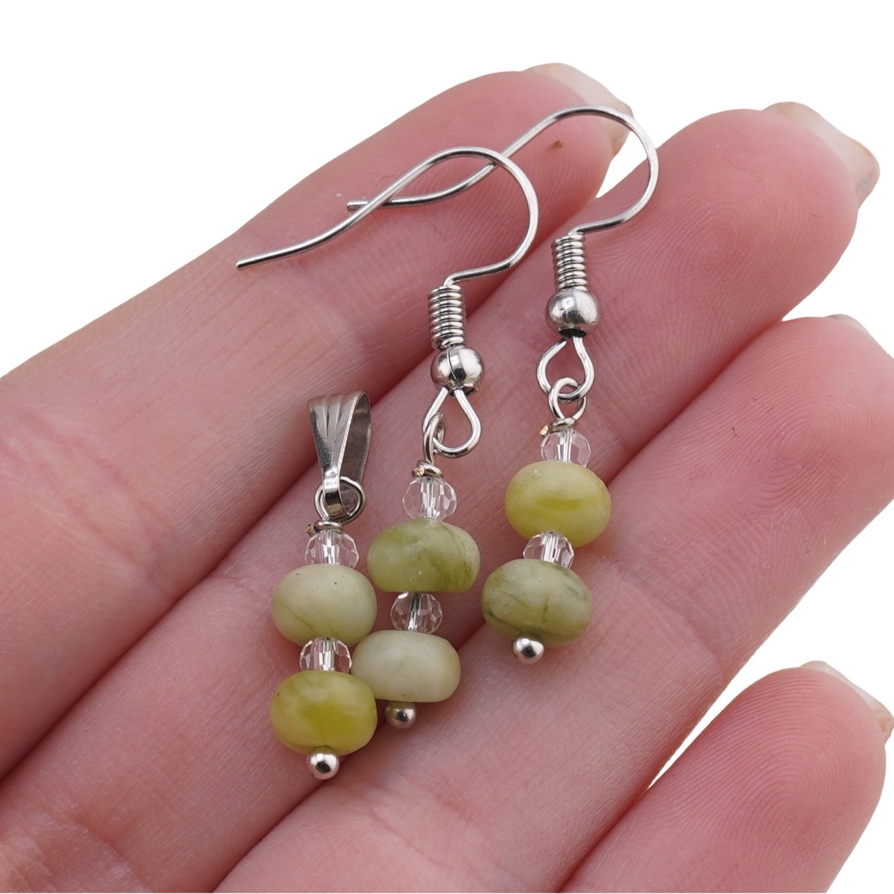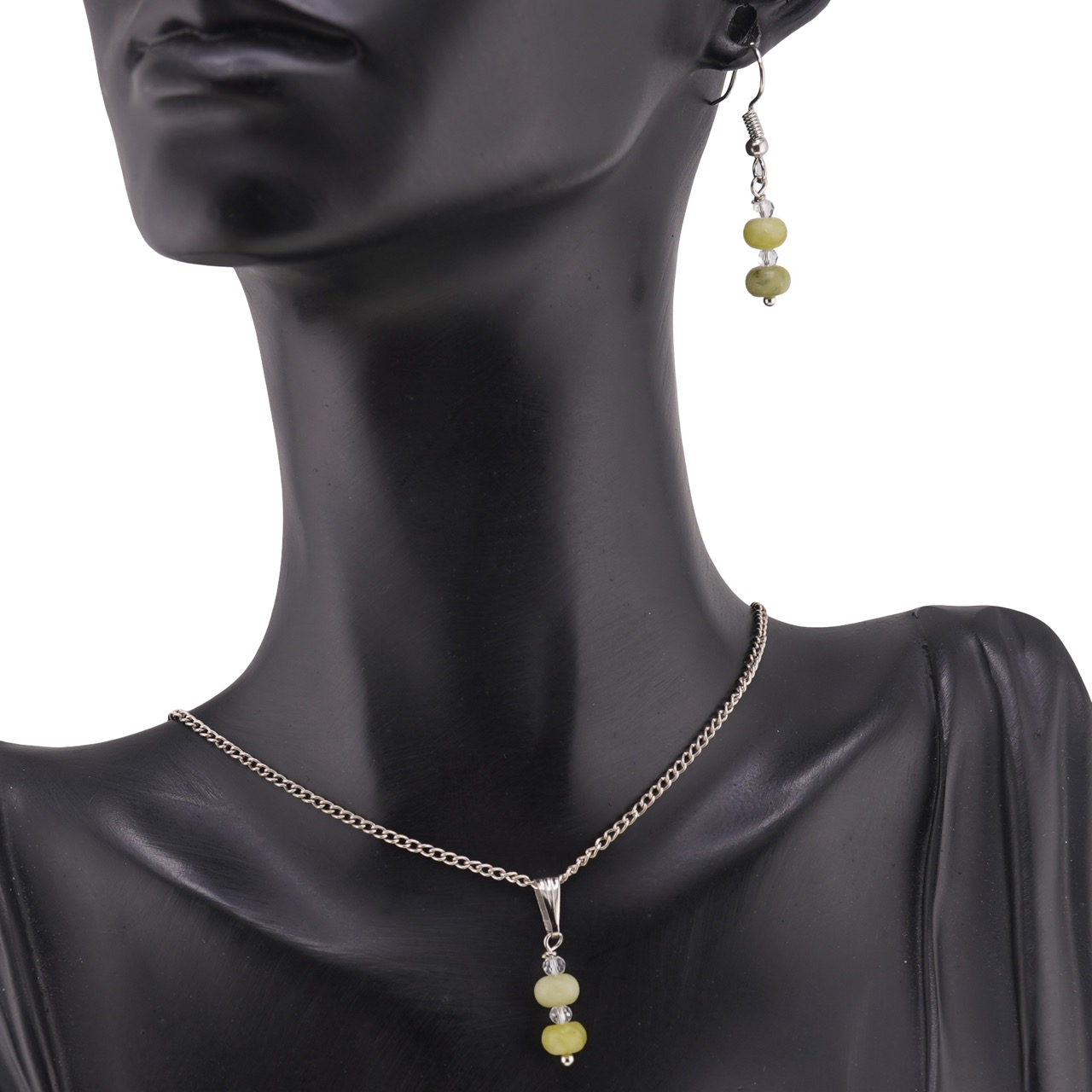 Set cercei si pandantiv Jad rondele 6mm si Zirconiu sfere fatetate 3mm