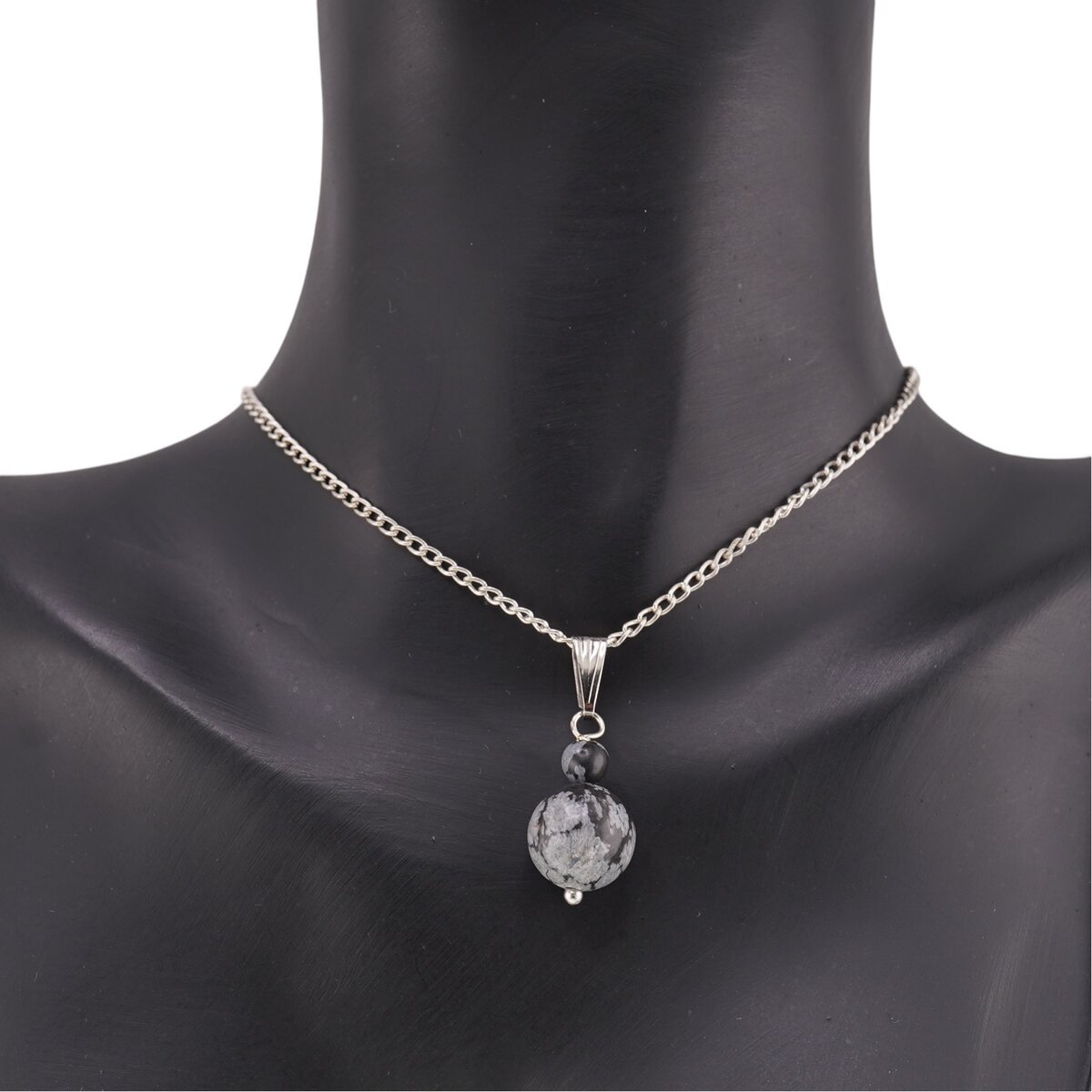 Set cercei și pandantiv Obsidian fulg de nea, sfere 10mm și 4mm
