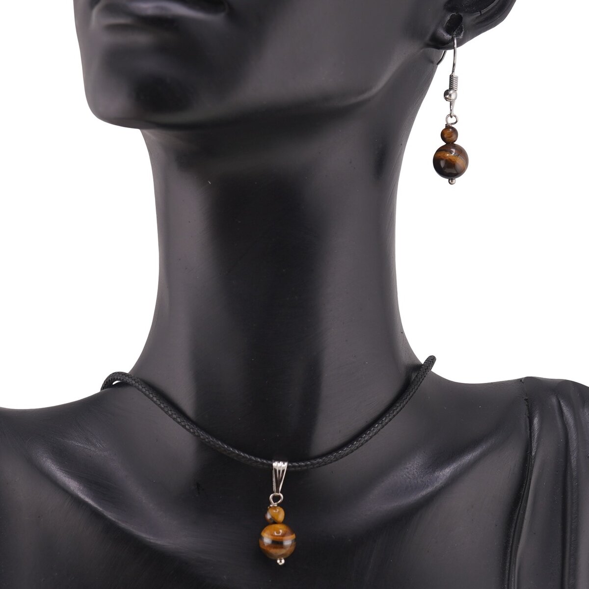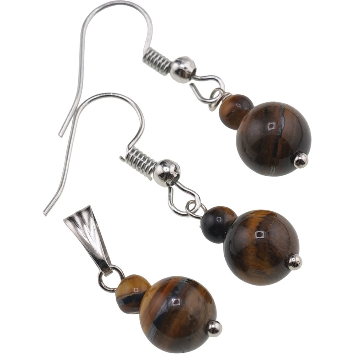 Set cercei și pandantiv Ochi de tigru sfere, 4–8 mm