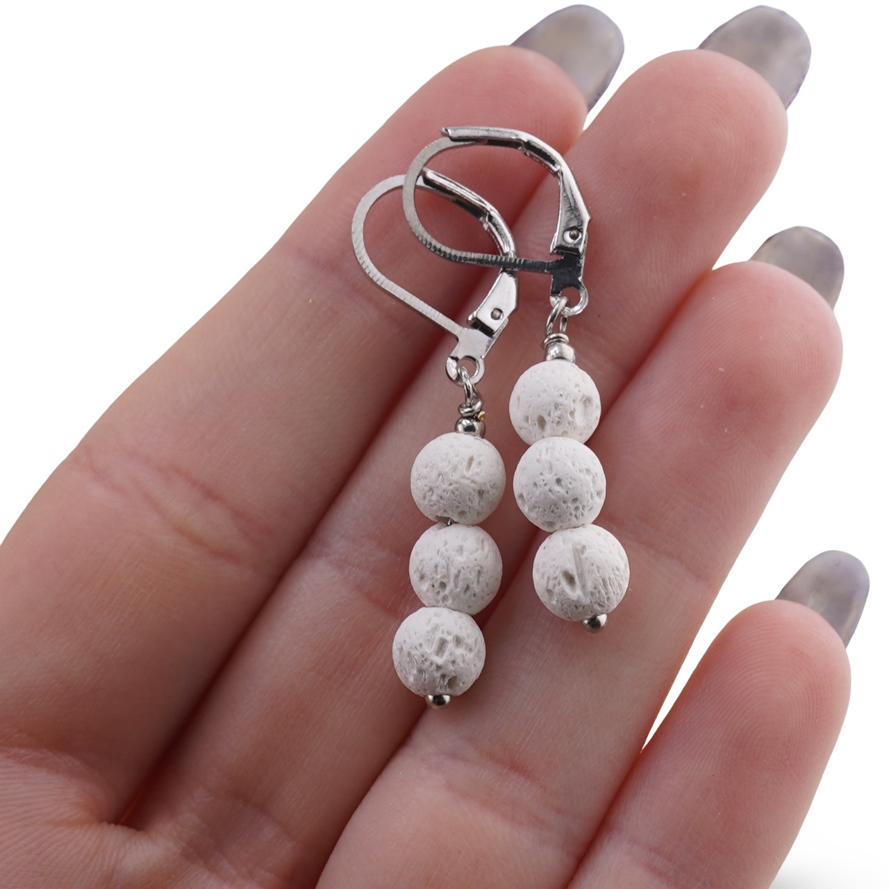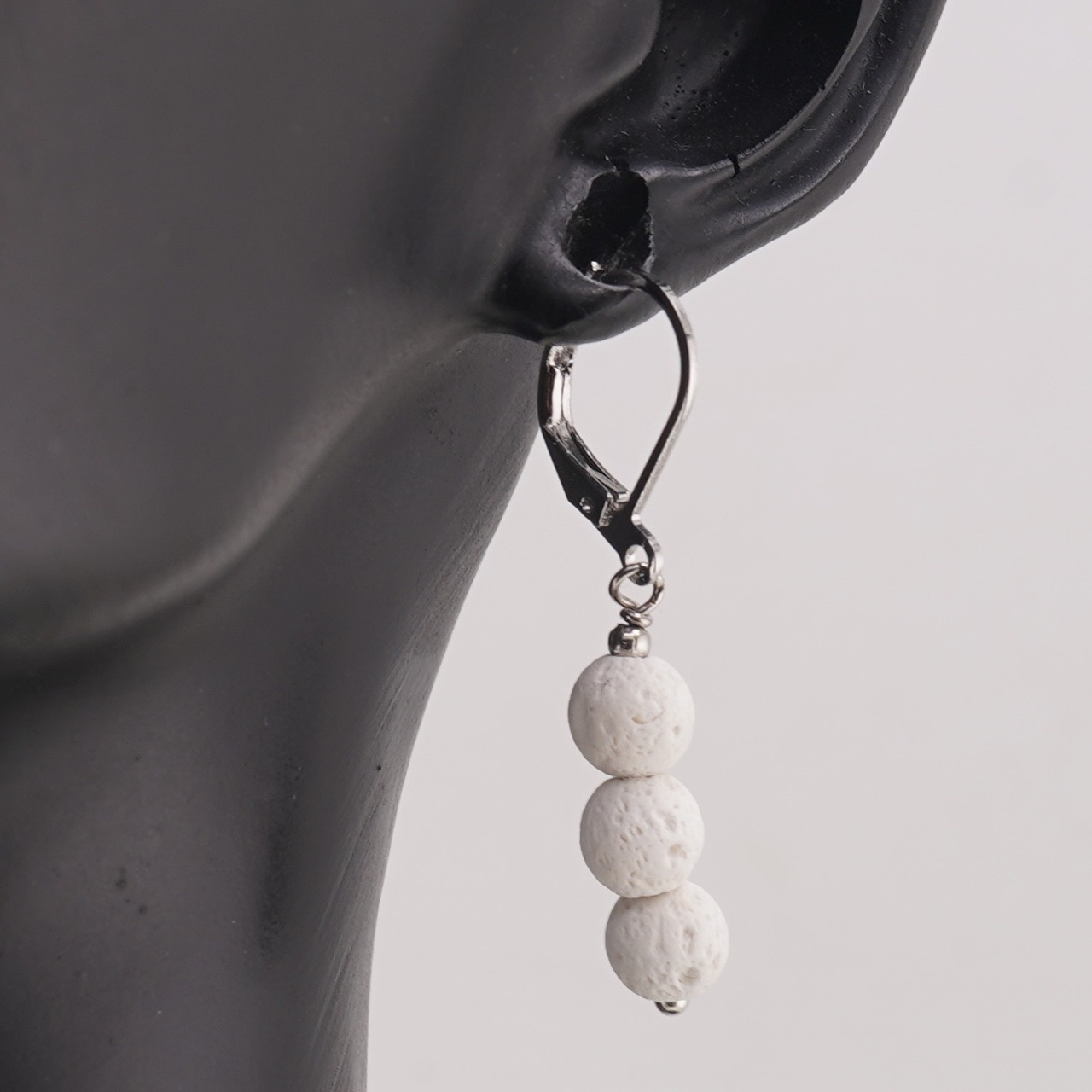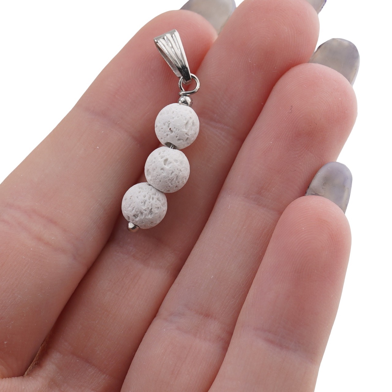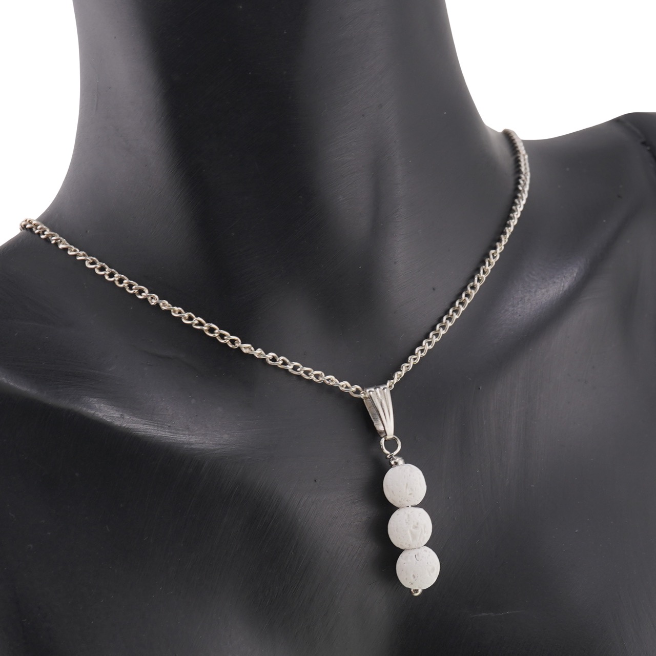 Set Cercei si Pandantiv Roca Vulcanica alba sfere, 6mm