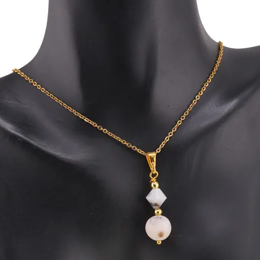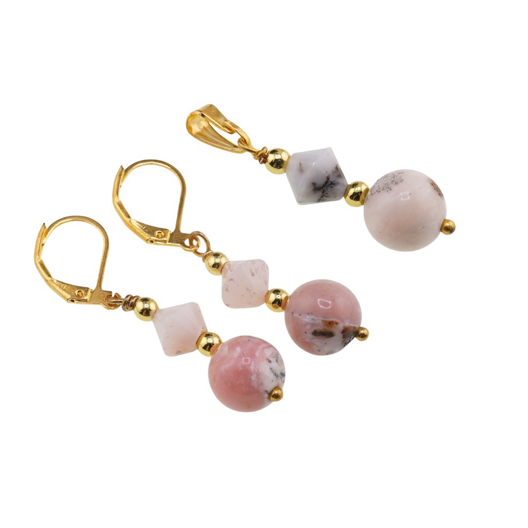 Set Cercei si Pandantiv Rodocrozit romb fatetat 8mm si sfera 10mm