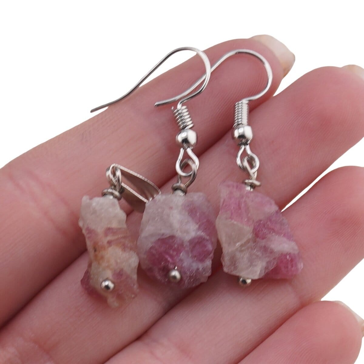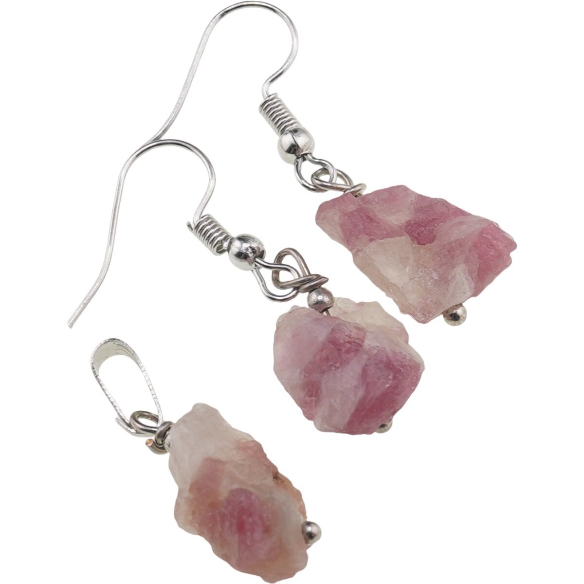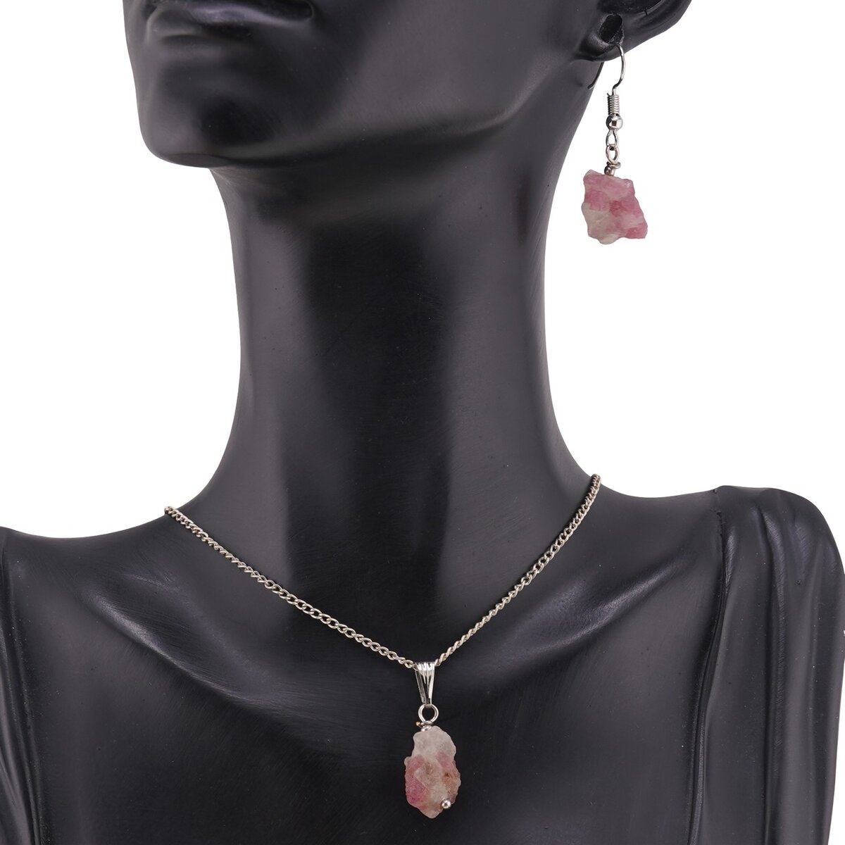 Set cercei și pandantiv Turmalină roz brută, 12–16 mm