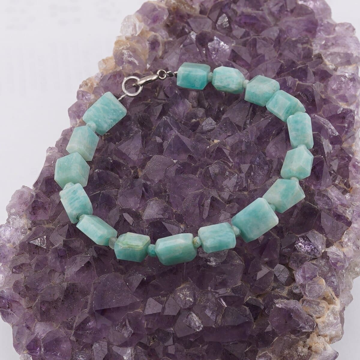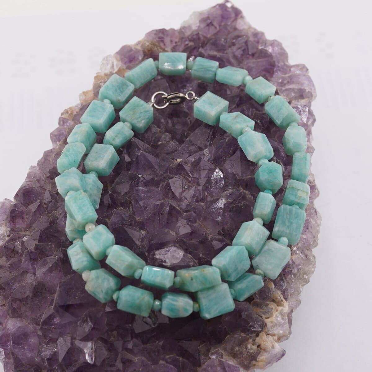 Alege acest set de colier și brățară din amazonit fațetat pentru a-ți aduce mai multă liniște, echilibru și claritate în fiecare zi. Poartă-le ca un memento discret că vocea ta contează și că inima știe întotdeauna drumul potrivit.