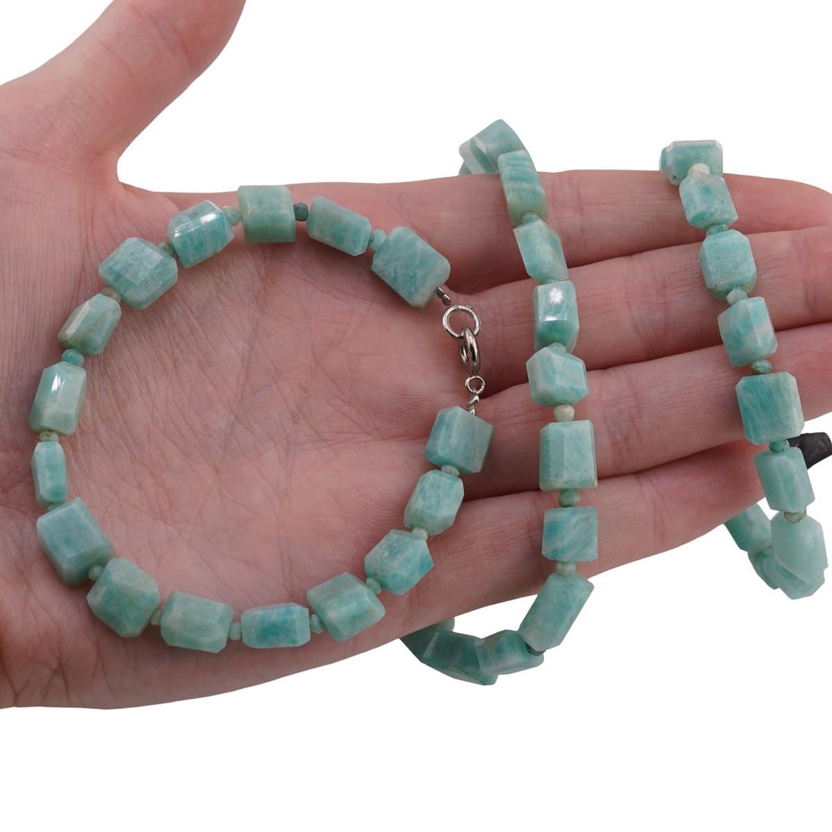 Set colier și brățară Amazonit fațetat 9–10 mm și discuri fațetate 4 mm