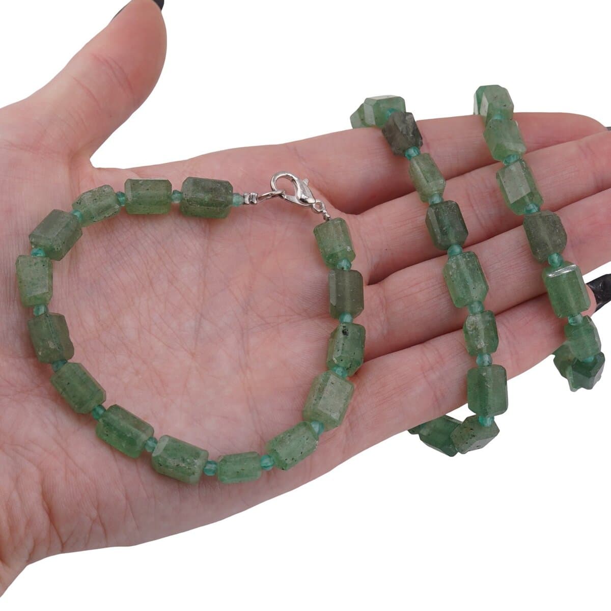 Fie că îl alegi pentru tine sau pentru cineva drag, acest set din aventurin verde aduce împreună eleganța discretă și o notă de optimism. Poartă-l atunci când te deschizi spre oportunități și bucură-te de o prezență calmă, ancorată și plină de sens.