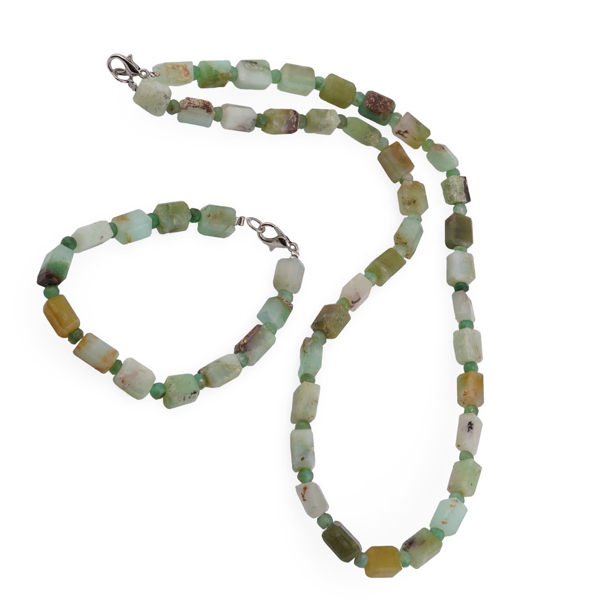 Set colier si bratara Crisopraz fatetat 9-10mm si discuri fatetate 4mm