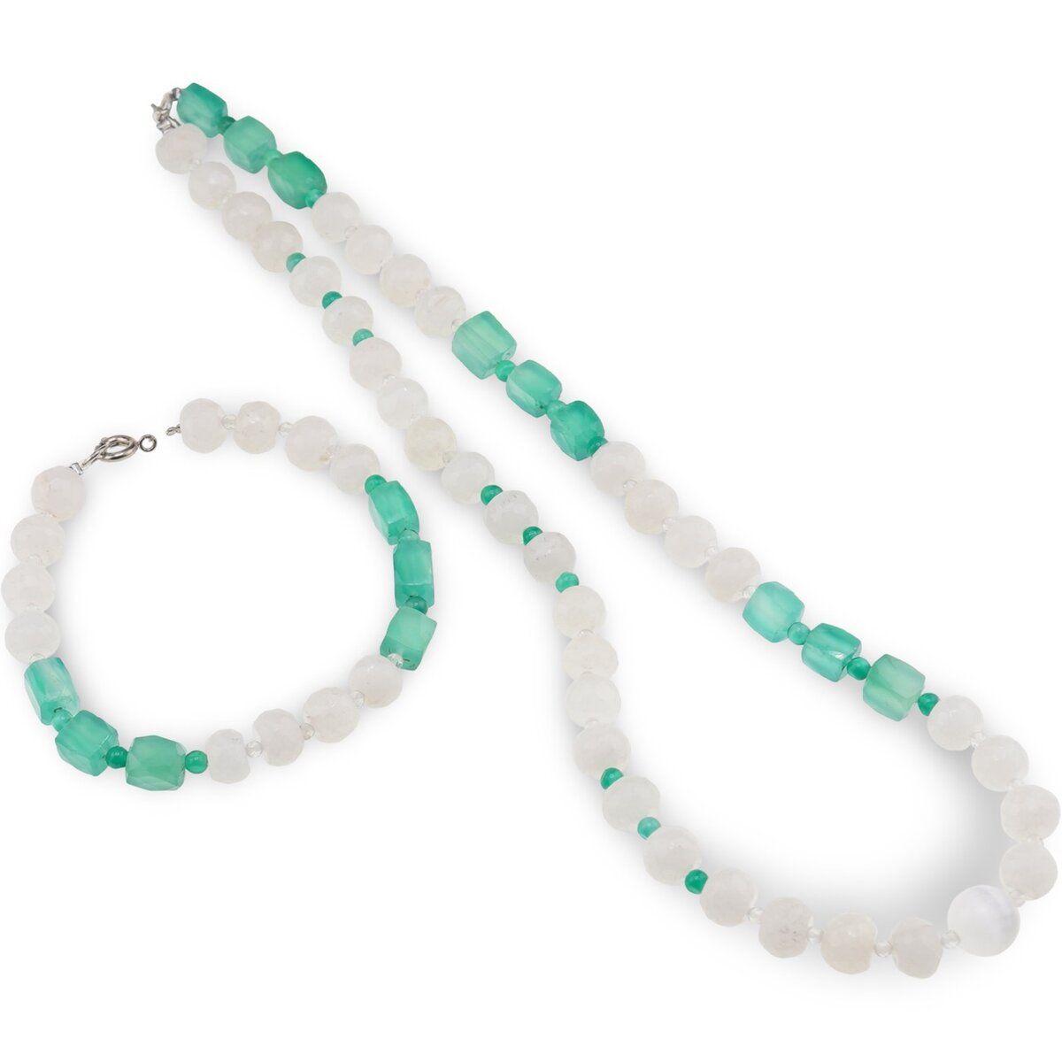 Set colier și brățară Cuart alb, Onix verde, Cristal de stâncă și Selenit