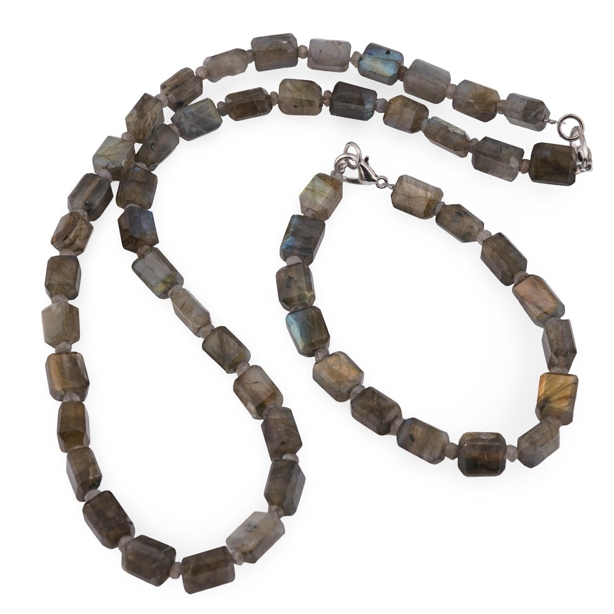 Set colier si bratara Labradorit fatetat 9-10mm si discuri fatetate 4mm