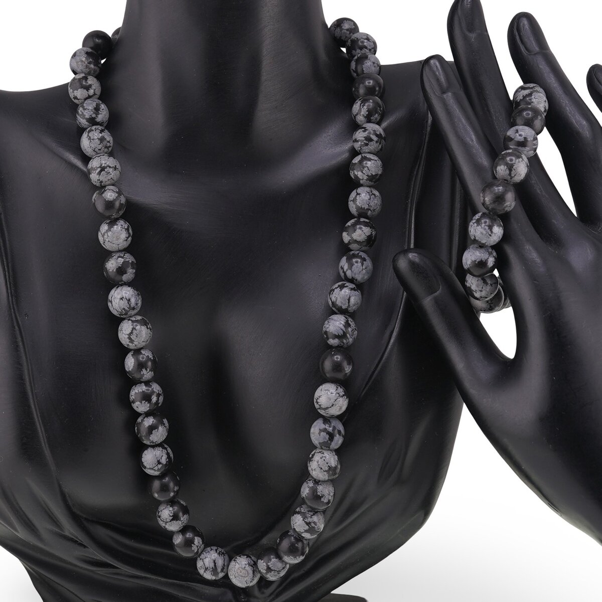 Set colier si bratara Obsidian fulg de nea sfere 10mm, Lungime bratara: 19cm - Mana medie Set colier si bratara Obsidian fulg de nea sfere 10mm, Lungime bratara: 17cm - Mana mica Set colier si bratara Obsidian fulg de nea sfere 10mm, Lungime bratara: 21cm - Mana mare
