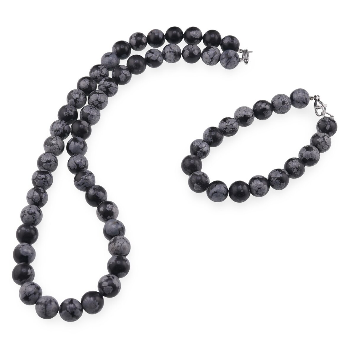 Set colier si bratara Obsidian fulg de nea sfere 10mm