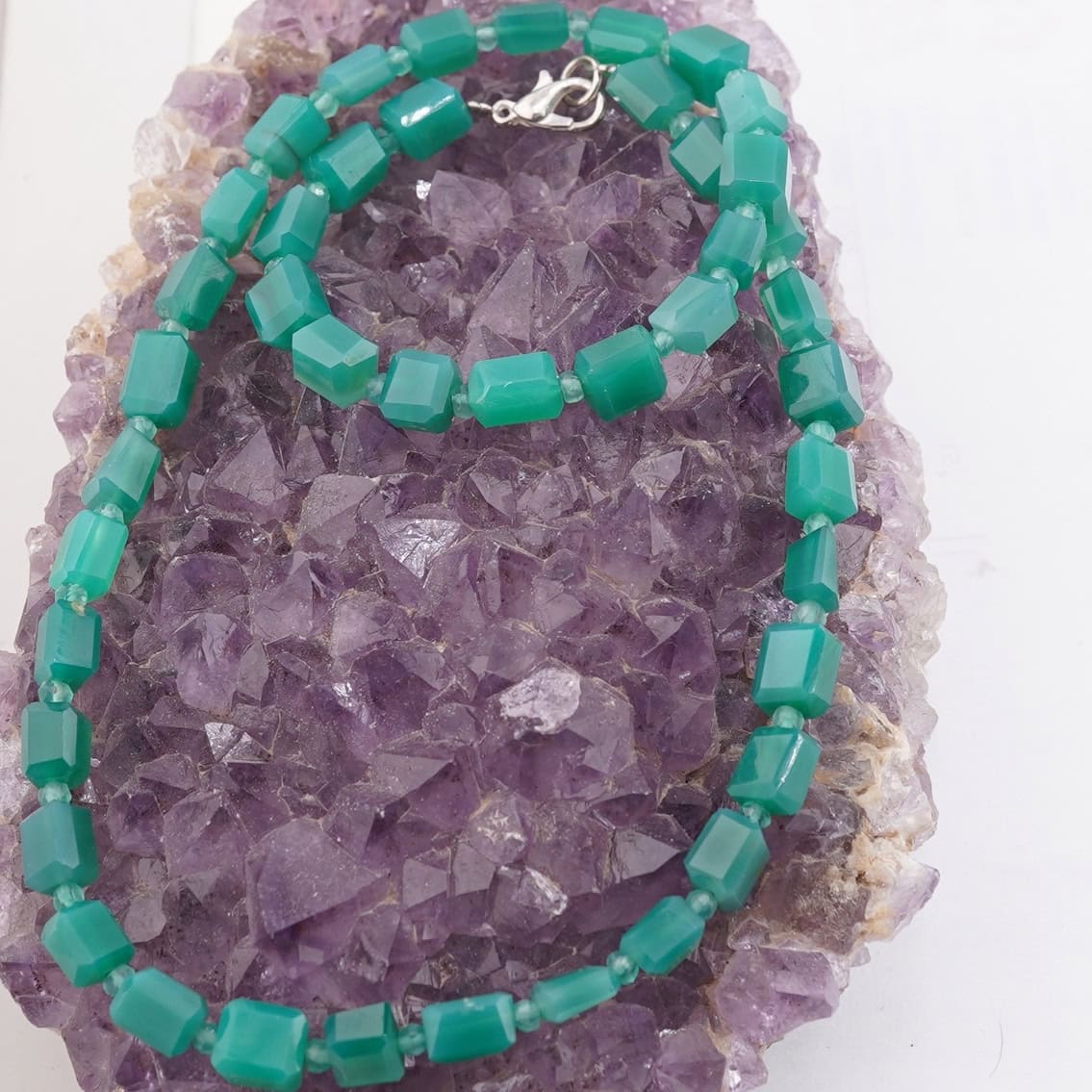 Acest set de bijuterii din Onix verde este creat pentru momentele în care ai nevoie de claritate și echilibru. Nuanța profundă de verde și luciul fațetelor dau o notă elegantă oricărei ținute, iar vibrația calmă a cristalului te ajută să rămâi centrat pe parcursul zilei.