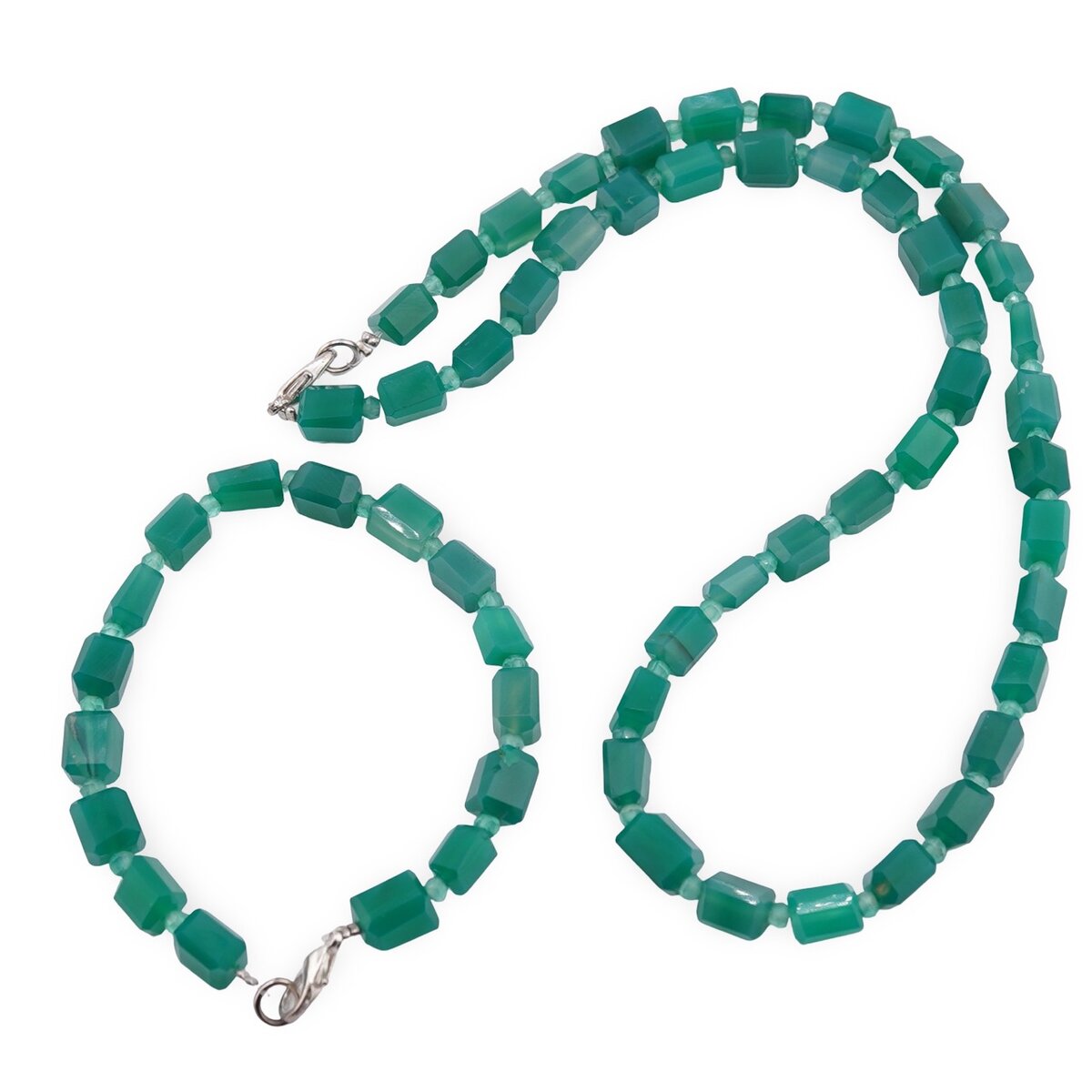 Set colier si bratara Onix verde fatetat 8-9mm si discuri fatetate 3mm