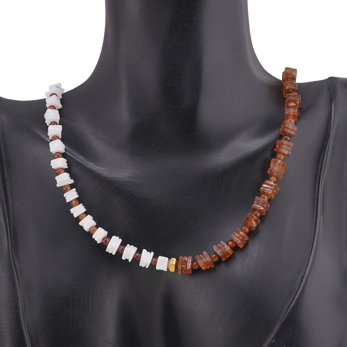 Setul de colier și brățară cu Opal alb, Granat hessonit și Hematit auriu este creat pentru tine dacă îți dorești bijuterii din cristal natural, care să îmbine eleganța cu sprijinul energetic de zi cu zi. Jocul de culori dintre albul luminos al opalului, nuanțele grena ale granatului și accentele aurii de hematit aduce un plus de rafinament oricărei ținute, de la cele casual la cele mai speciale.