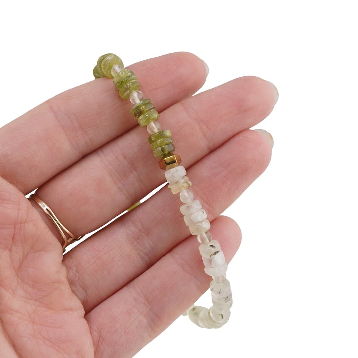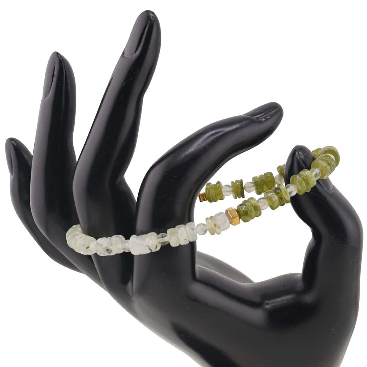 Acest set de colier și brățară din cristale naturale este creat pentru tine dacă îți dorești mai multă claritate, energie și stabilitate în viața de zi cu zi. Peridotul, Prehnitul și Hematitul auriu se îmbină într-un joc plăcut de nuanțe de verde și auriu, potrivite atât pentru ținute lejere, cât și pentru momente speciale.