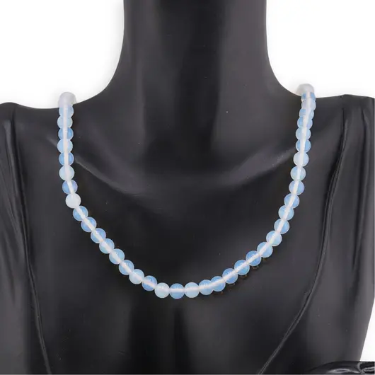 Set Opalit sfere 6mm. Setul este format din colier, cercei cu agatatoare clasica si bratara pe elastic potrivita pentru o incheietura de aproximativ 17-18cm