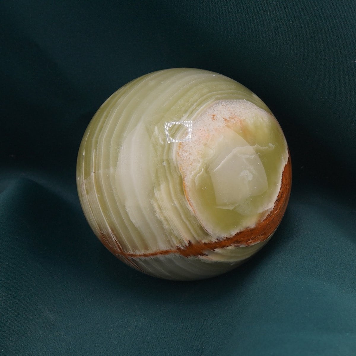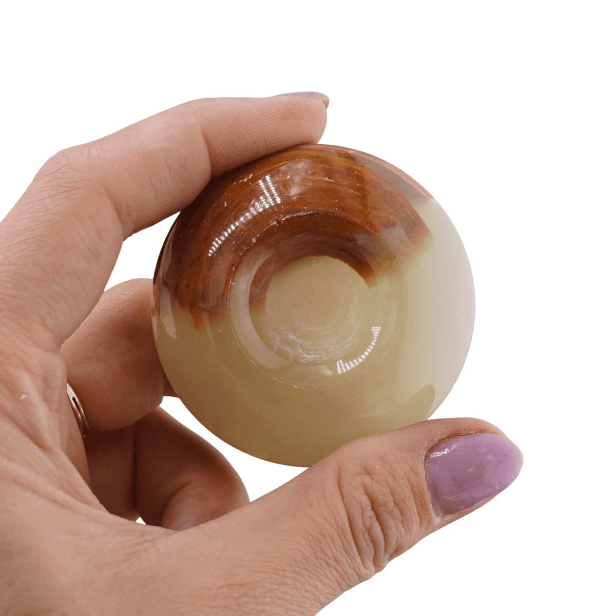 Luciu fin, structură densă și textură uniformă – toate vorbesc despre caracterul onest al onixului. Fiecare sferă are personalitatea ei, iar culorile pământii cu accente verzi creează un contrast subtil ce atrage privirea, fără a domina spațiul. Suportul inclus pune piesa în valoare și te ajută să o așezi pe birou, pe o etajeră sau pe noptieră cu eleganță și siguranță. Este un produs nou în colecție, gata să fie integrat în rutina ta de lucru sau de relaxare.