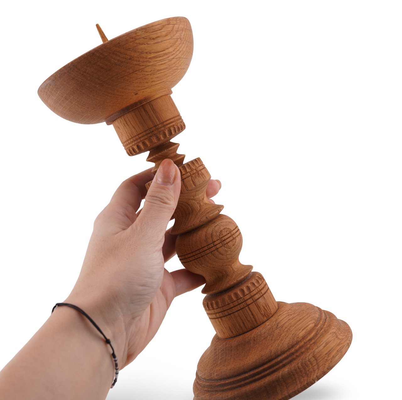 Este o alegere inspirată dacă vrei să oferi un cadou cu aspect clasic, dar actual, sau dacă îți dorești pentru tine un obiect care să aducă mai multă atmosferă în serile liniștite de acasă. Lasă lumina lumânării să evidențieze formele sculptate în lemn și transformă acest sfesnic vintage din lemn sculptat, model scandinav, în acel detaliu cald care îți întregește decorul și te face să te simți bine în propriul spațiu.