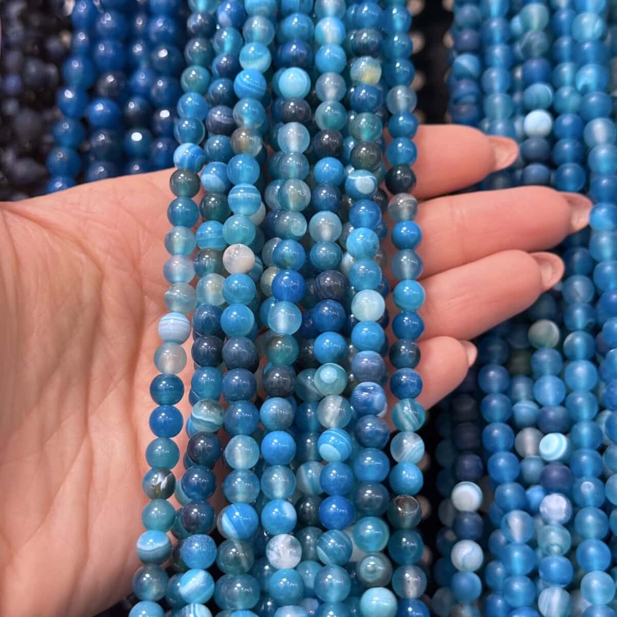 Siragul de agat albastru dantelat cu sfere de 6 mm este o alegere potrivită pentru tine dacă îți dorești bijuterii cu un aspect delicat, în nuanțe calmante de albastru. Fiecare mărgea este realizată din cristal natural vopsit, astfel încât textura specifică agatului se îmbină cu o culoare uniformă și plăcută, ideală pentru proiecte de bijuterii care ies ușor în evidență.