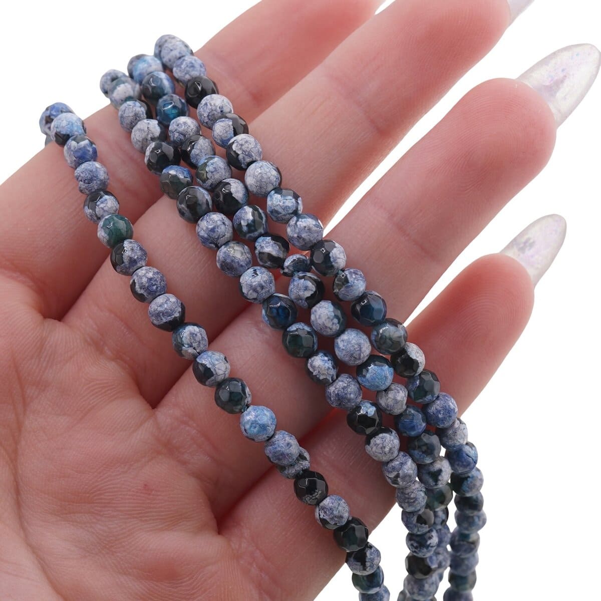 Sirag Agat albastru patat sfere fatetate 4mm, 36-37cm