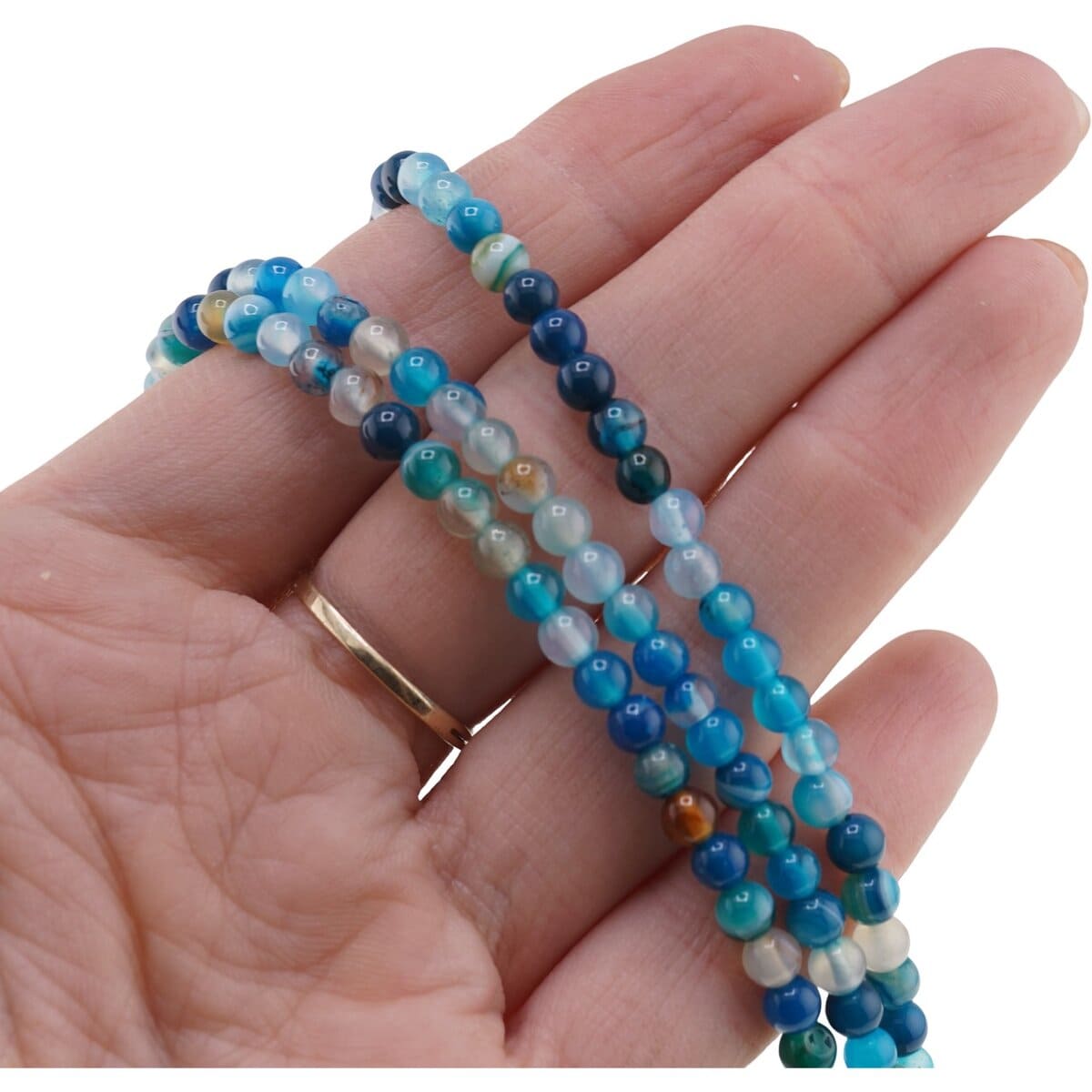 Siragul de Agat albastru cu sfere de 4 mm este o alegere potrivită pentru tine dacă îți place să creezi bijuterii delicate, cu un aspect curat și plăcut. Tonurile de albastru, obținute prin vopsirea cristalului natural, pun în valoare fiecare mărgea rotundă și oferă un efect vizual armonios, ușor de integrat în diverse stiluri.