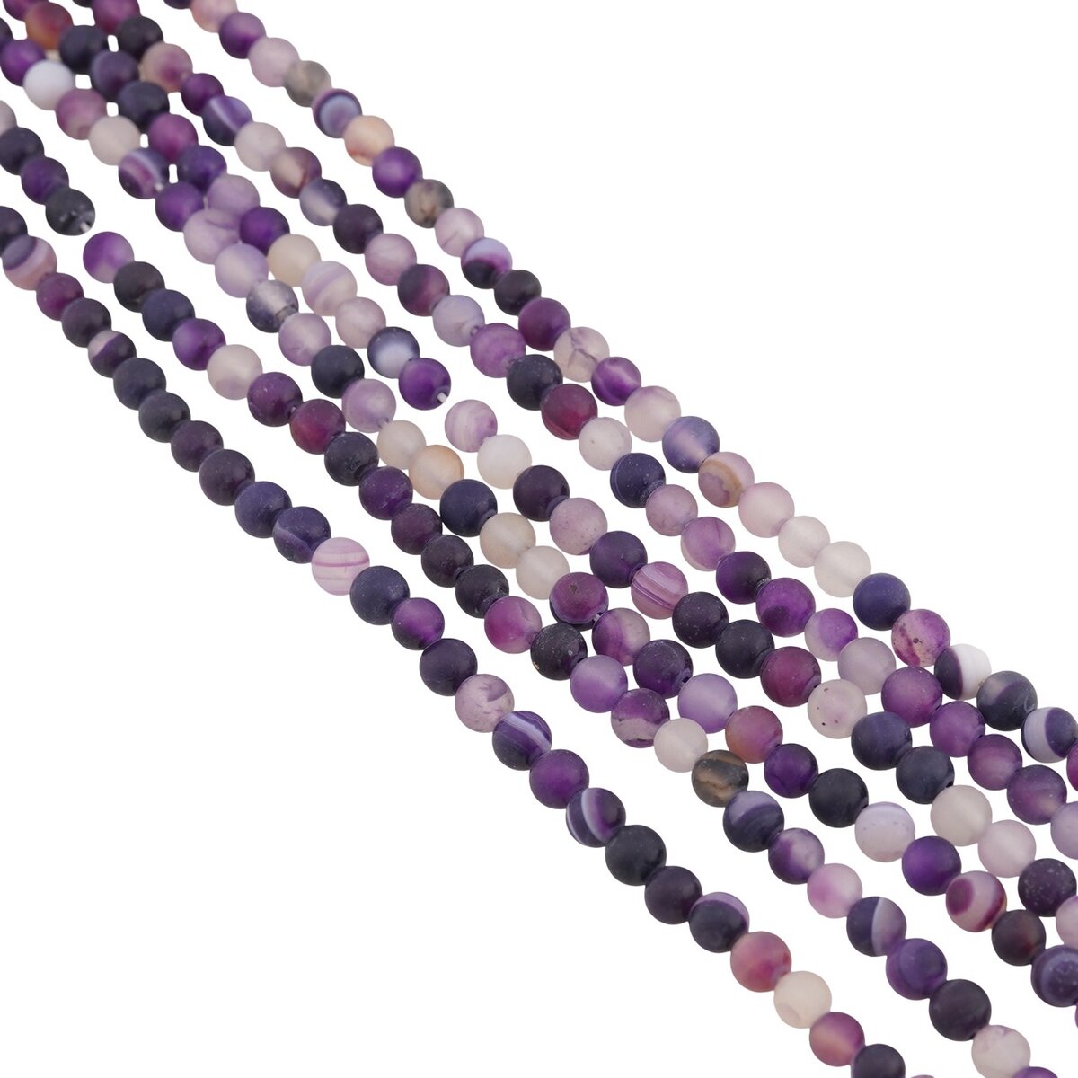 Siragul din agat mov dantelat cu sfere mate de 4 mm este o alegere potrivită dacă îți dorești să creezi bijuterii delicate, cu un aer calm și rafinat. Nuanțele de mov se împletesc discret cu texturile naturale ale pietrei, iar aspectul mat oferă un efect discret, plăcut la vedere și ușor de integrat în stilul tău de zi cu zi.
