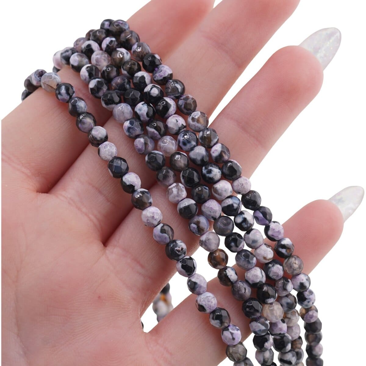 Acest șirag de agat mov patat, cu sfere fațetate de 4 mm, este o alegere potrivită pentru tine dacă îți place să creezi bijuterii cu personalitate și nuanțe rafinate. Nuanțele de mov se îmbină cu accente de alb, formând un joc interesant de culori pe toată lungimea de aproximativ 36–37 cm, astfel încât fiecare piesă pe care o realizezi să aibă un aspect plăcut și armonios.