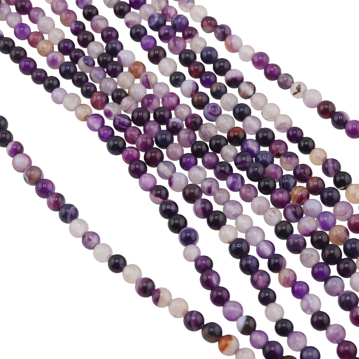 Agatul mov este apreciat pentru tonurile sale profunde, care pot completa atât ținutele de zi, cât și pe cele de seară. Nuanța uniformă, obținută prin vopsirea cristalului natural, îți permite să folosești șiragul în combinație cu alte pietre, metal argintiu, inox sau cu sârmă colorată, astfel încât să obții modele cât mai apropiate de stilul tău personal.