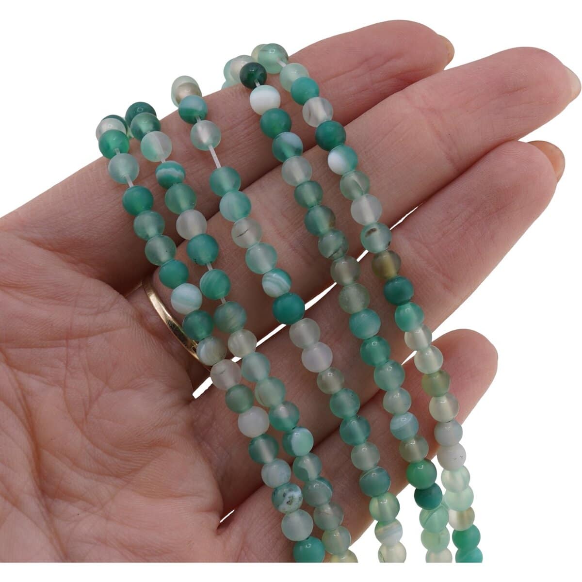 Siragul de agat verde mat cu sfere de 4 mm este o alegere potrivită dacă îți place să creezi bijuterii cu personalitate și să te joci cu detaliile fine. Nuanța de verde este plăcută și echilibrată, iar aspectul mat oferă un aer discret, ușor de integrat atât în modele simple, cât și în combinații mai îndrăznețe.