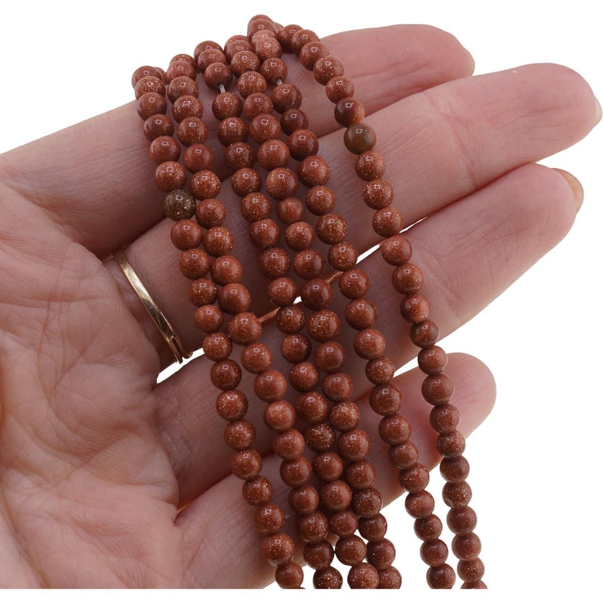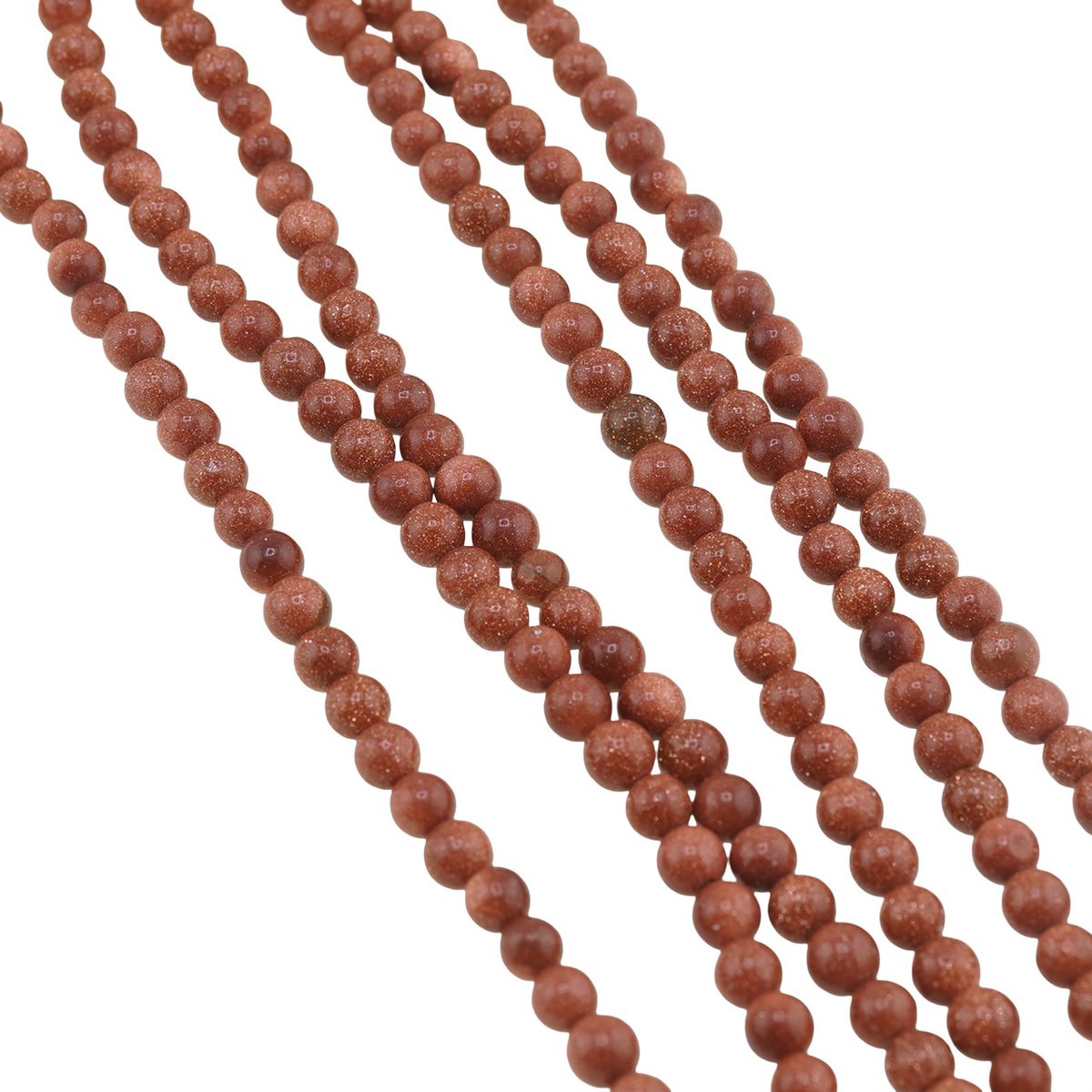 Siragul de Goldstone maro cu sfere de 4 mm, pe o lungime de aproximativ 37-38 cm, este o alegere potrivită pentru tine dacă îți place să creezi bijuterii elegante, cu un aer cald și rafinat. Nu este un cristal natural, ci un cristal sintetic, cunoscut pentru strălucirea lui aparte, ce amintește de scânteile focului, fiind astfel adesea asociat cu elementul Foc.
