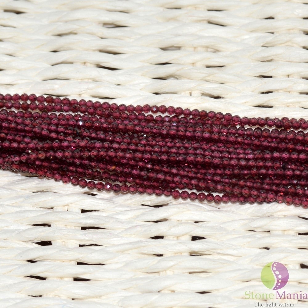 Sirag granat rhodolit pietre micro fatetate 2mm, 33cm. Pietre semipretioase naturale pentru confectionarea bijuteriilor acasa, slefuite in India. Certificat de garantie!