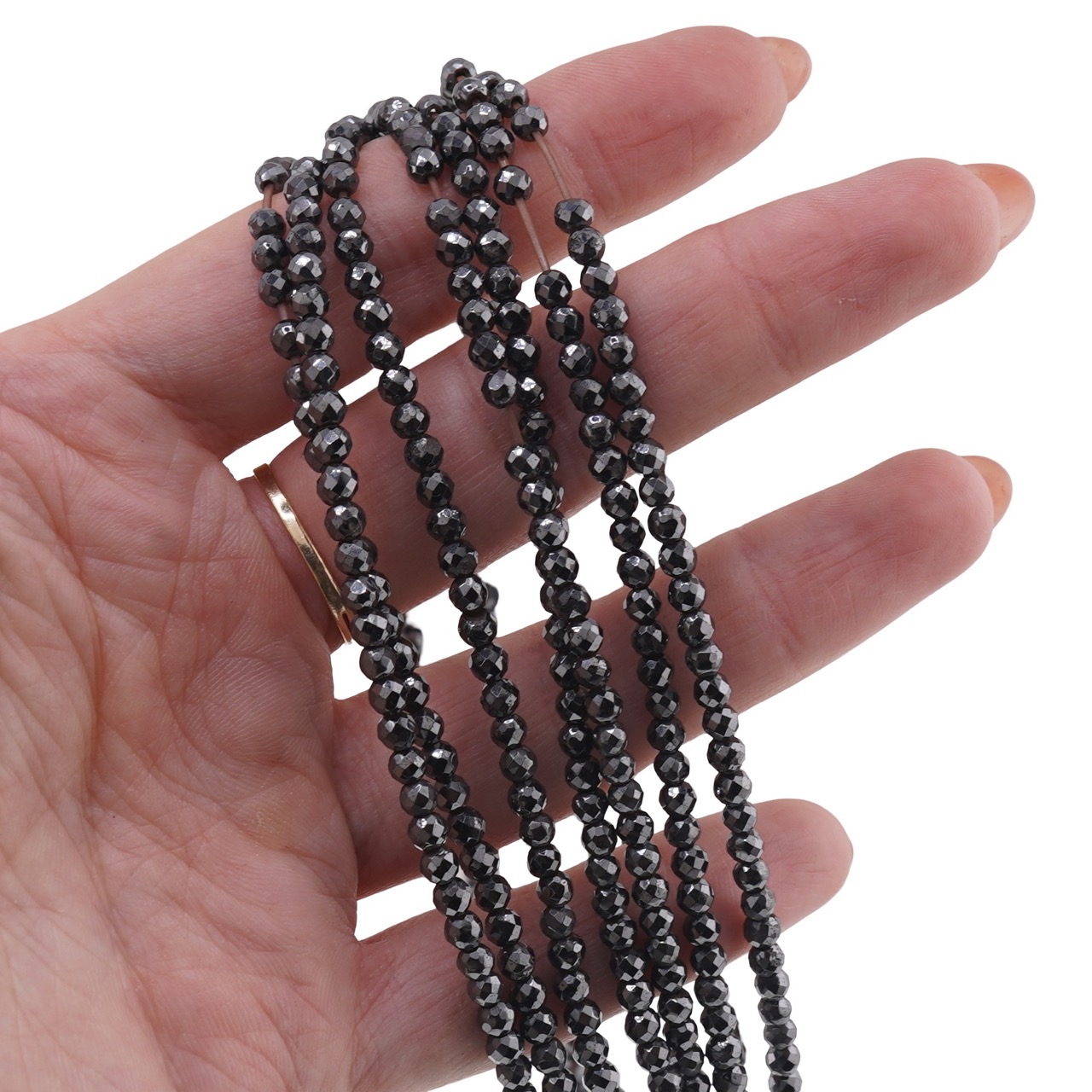 Șirag Hematit sfere fațetate 3mm, 38cm – energie, claritate și protecție în bijuteriile tale