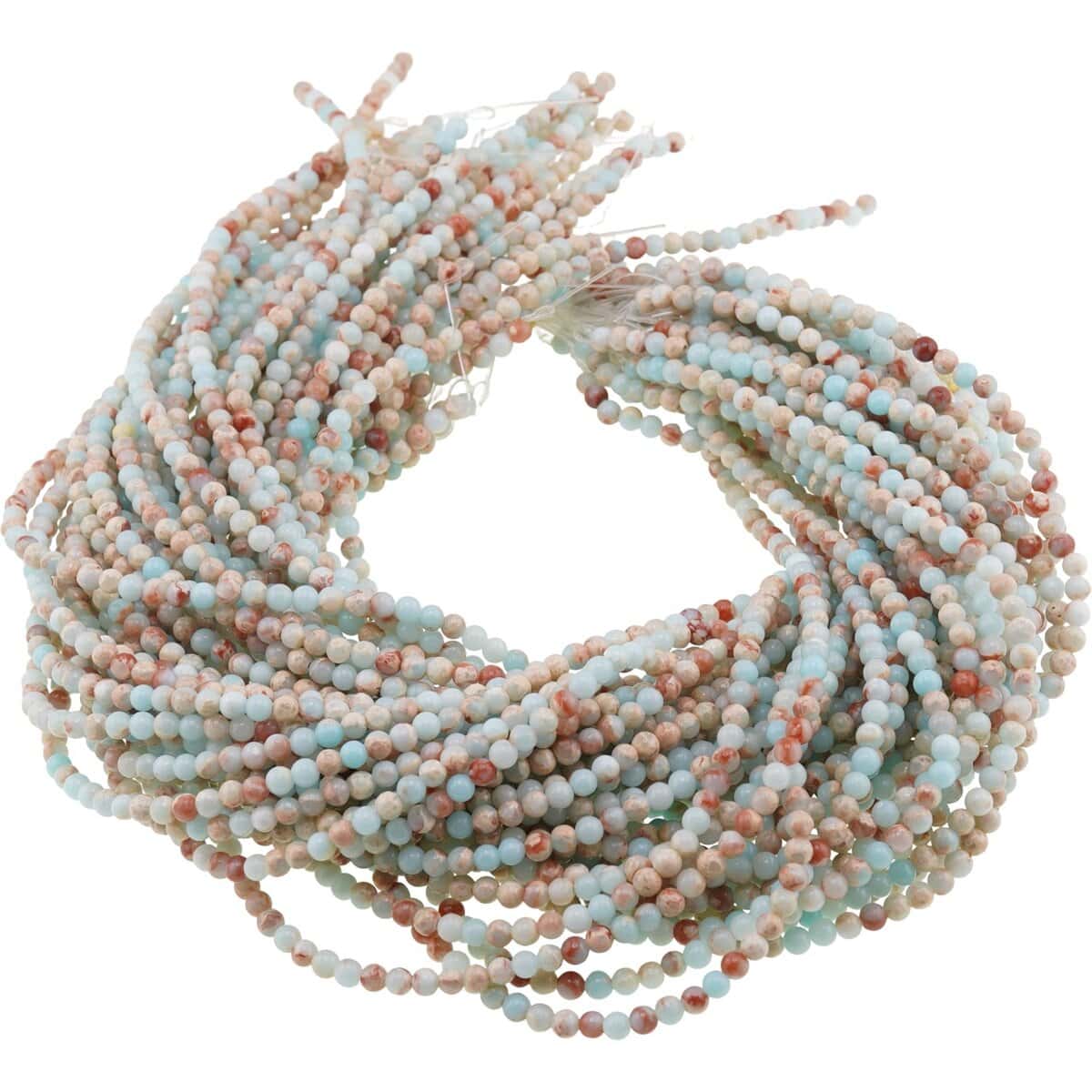 Siragul de Jasp Imperial Blue Sea Sediment în nuanțe de albastru, crem și roșu este o alegere armonioasă pentru tine dacă îți place să creezi bijuterii cu personalitate. Fiecare mărgea este șlefuită sub formă de sferă de aproximativ 4 mm, astfel încât șiragul să fie fin, plăcut la atingere și ușor de integrat în proiectele tale de bijuterii pentru fiecare zi.