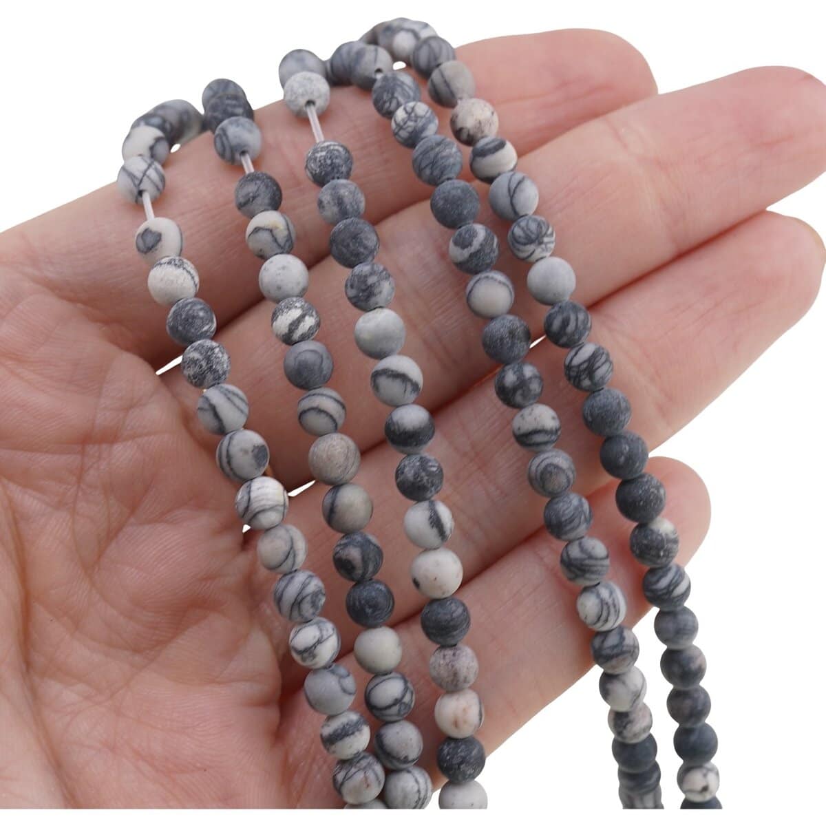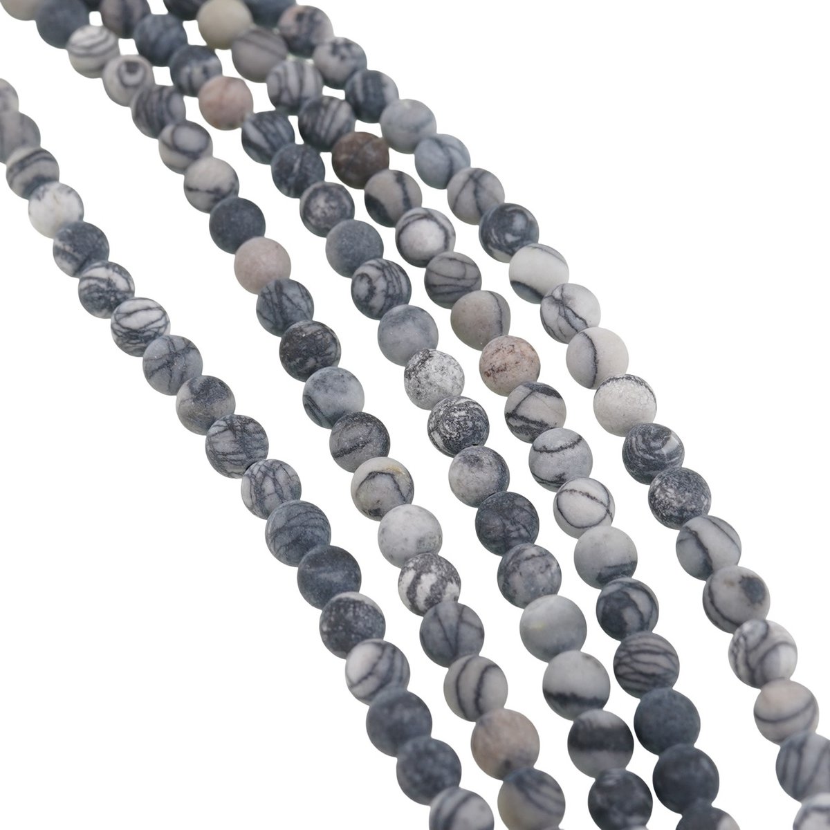 Siragul de Jasp Pinolith mat cu sfere de 4-5 mm, cu lungime cuprinsă între 36 și 39 cm, este o alegere potrivită dacă îți dorești bijuterii discrete, cu un aspect natural și ușor de asortat. Nuanțele de gri, îmbinate cu texturi interesante specifice acestui tip de jasp, dau un aer calm și echilibrat pieselor pe care le vei crea.