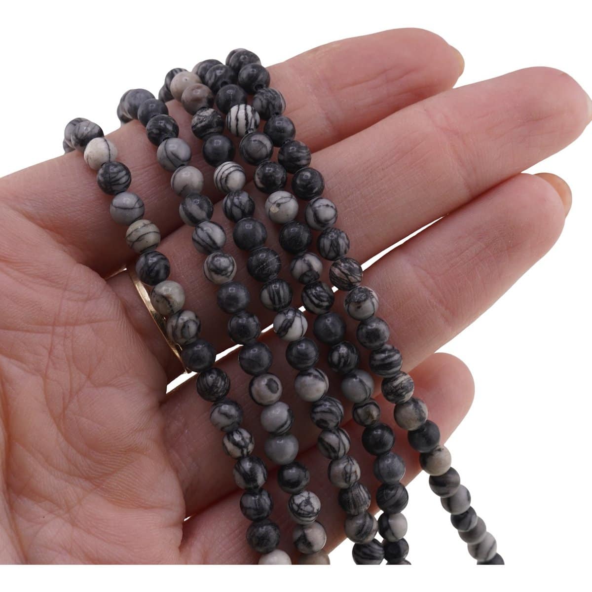 Siragul de Jasp Pinolith cu sfere de 4-5 mm, având o lungime de aproximativ 38-39 cm, este o alegere inspirată dacă vrei să creezi bijuterii din cristale naturale, cu un aspect discret și echilibrat. Nuanțele de gri, îmbinate cu modelul specific acestei pietre semiprețioase, dau un joc vizual interesant, ușor de integrat atât în piese simple, cât și în combinații mai îndrăznețe.