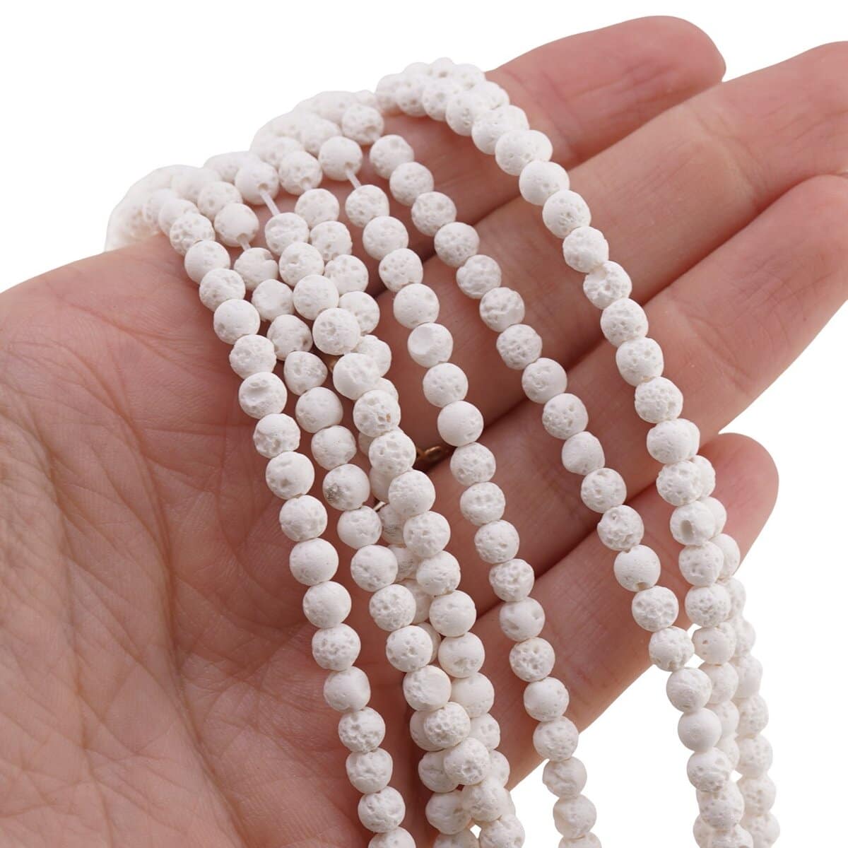 Acest șirag de rocă vulcanică albă cu sfere de 4 mm este o alegere potrivită pentru tine dacă îți dorești să creezi bijuterii cu aspect natural, dar și cu o vibrație plină de energie și vitalitate. Realizat din rocă vulcanică naturală, ulterior vopsită în alb, șiragul îmbină textura poroasă specifică Pietrei de Lavă cu o nuanță luminoasă, ușor de adaptat la multe stiluri.
