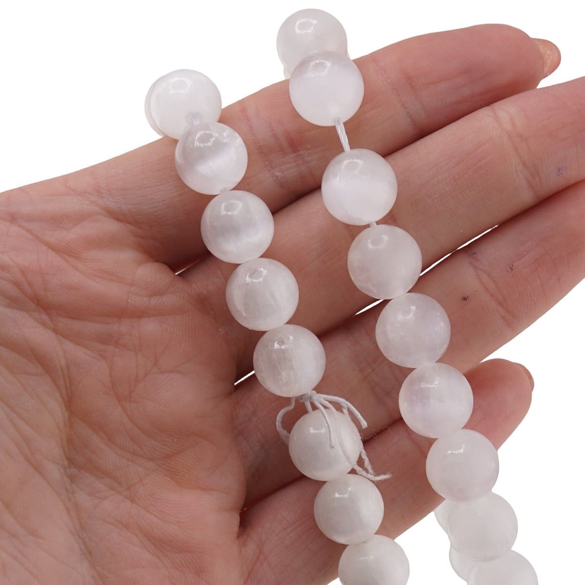 Acest șirag este realizat din selenit 100% natural, o varietate de gips fibros, recunoscută în lumea cristalelor pentru vibrația sa liniștitoare. Forma de sferă ajută la o distribuire uniformă a energiei, fiind potrivită pentru brățări, coliere sau alte bijuterii pe care să le porți aproape de tine în fiecare zi. Duritatea redusă a cristalului, de aproximativ 2 pe scara Mohs, îi conferă un aspect delicat, care merită manevrat cu grijă și respect.
