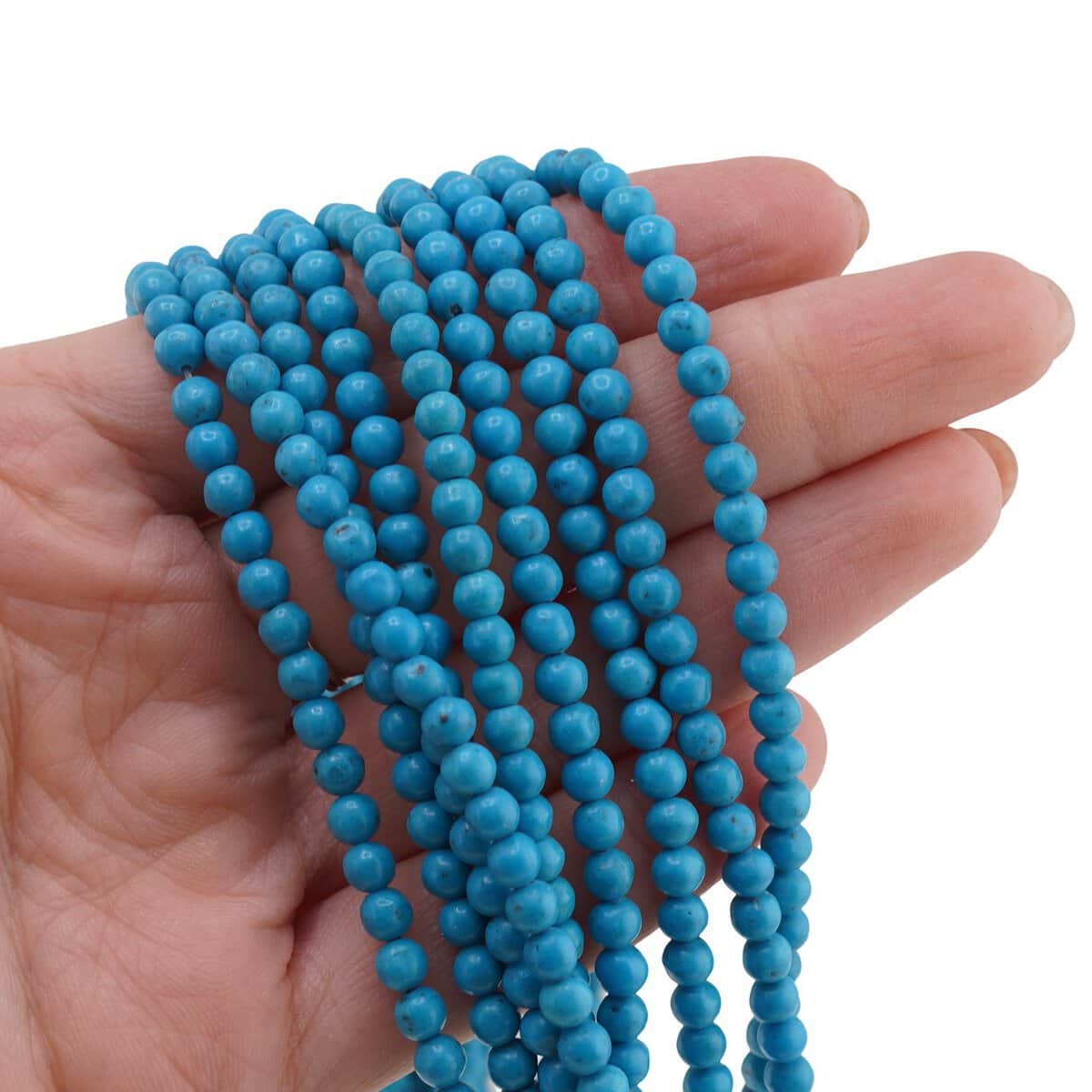 Acest șirag de turcoaz albastru, format din sfere de aproximativ 4 mm, este o alegere potrivită dacă îți dorești să creezi bijuterii delicate, cu un aer proaspăt și modern. Nuanța de albastru este plăcută și ușor de asortat, astfel încât îl poți integra în multe combinații de culori și stiluri.