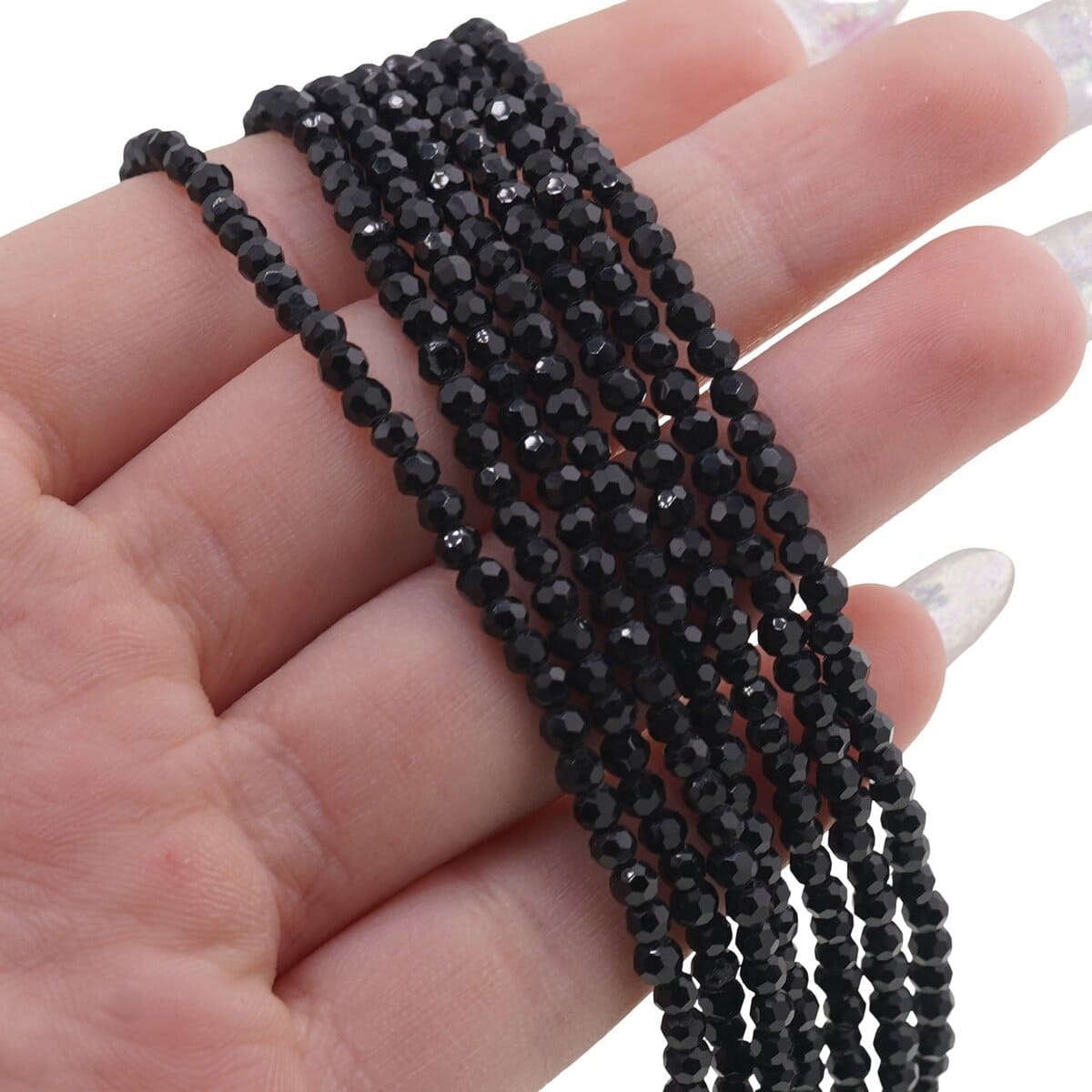 Sirag Zirconiu (sticla) negru sfere fațetate 3mm, 38–39cm