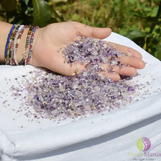 - Așază chipsurile de ametist într-un bol decorativ, pe noptieră sau pe birou, pentru o notă de culoare și o stare de calm.