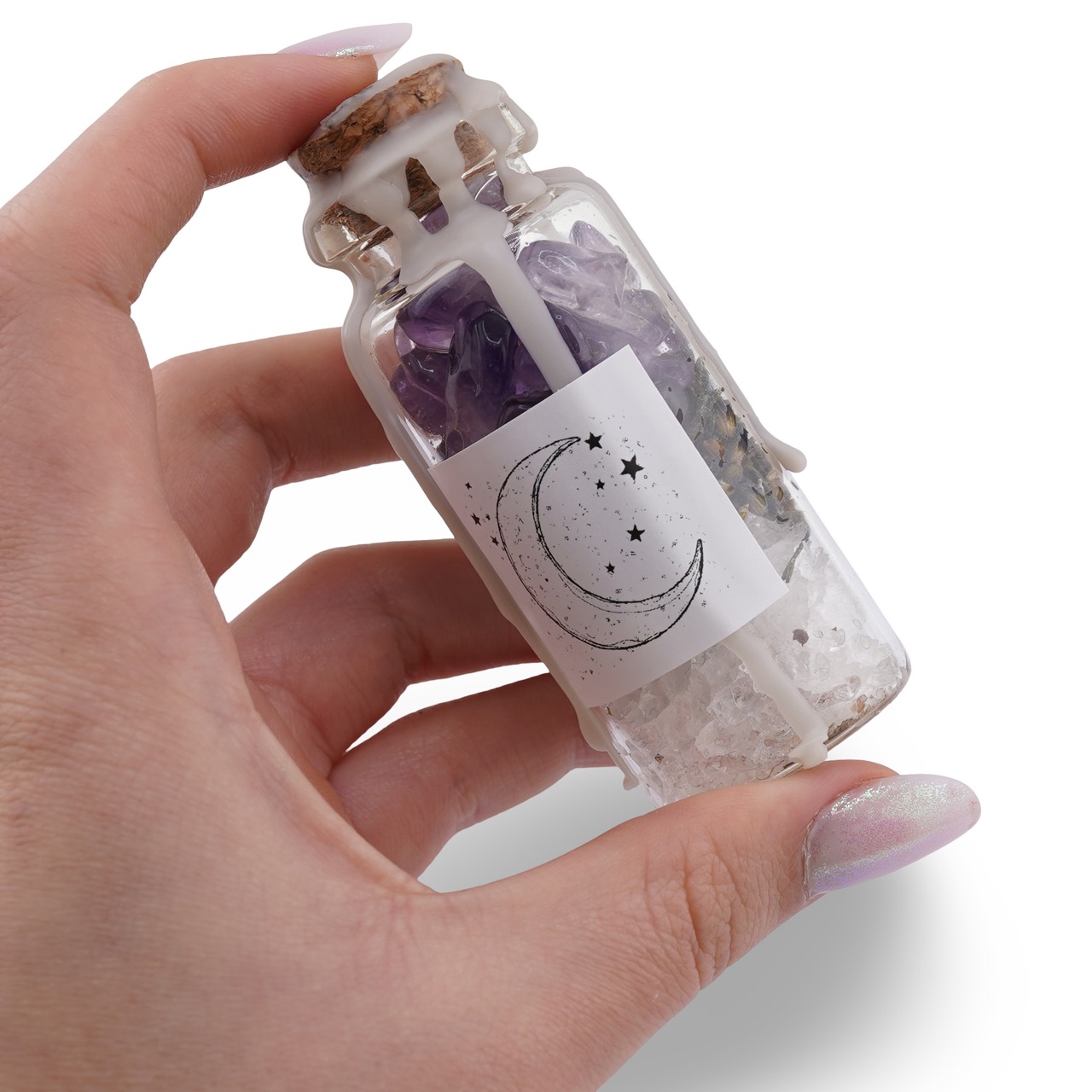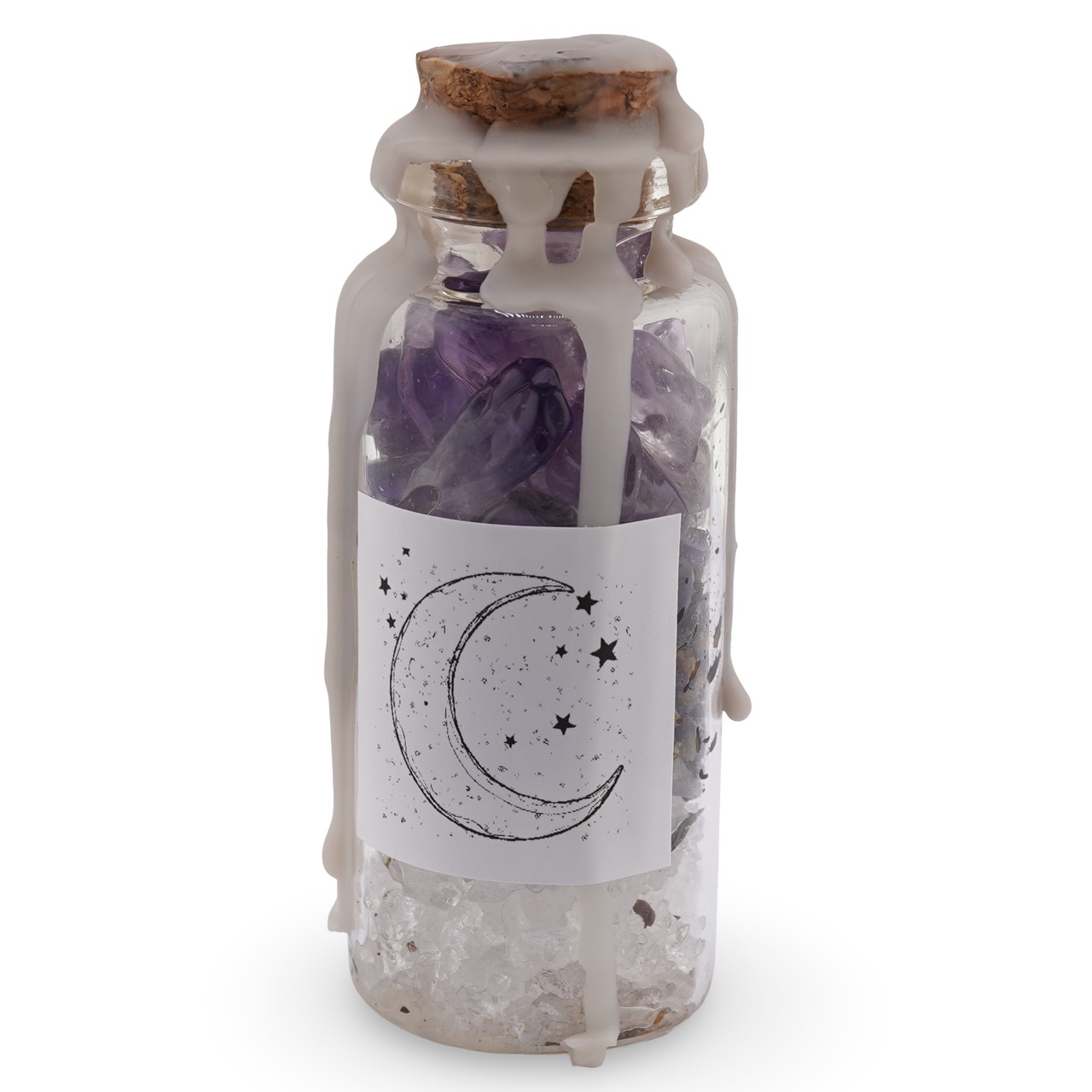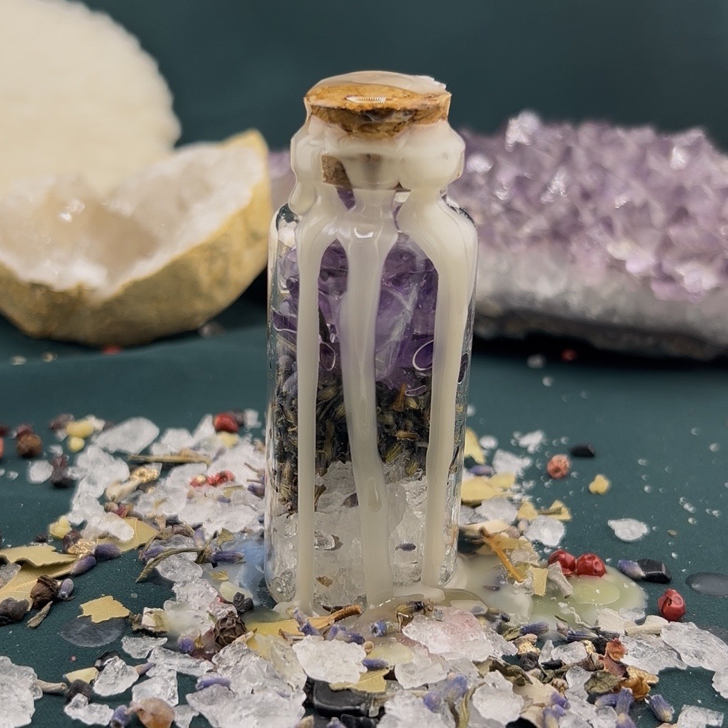 Puneți spell jarul pe noptieră sau sub pernă. Poate fi folosit seara, înainte de culcare, pentru relaxare și curățare energetică.